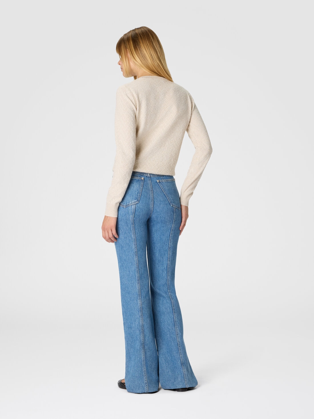 A garment with an essential and distinctive character. This women's long-sleeved crew neck sweater in a cotton and viscose blend stands out for its solid-color jacquard weave enriched with a chevron pattern, an iconic sign of Missoni style.