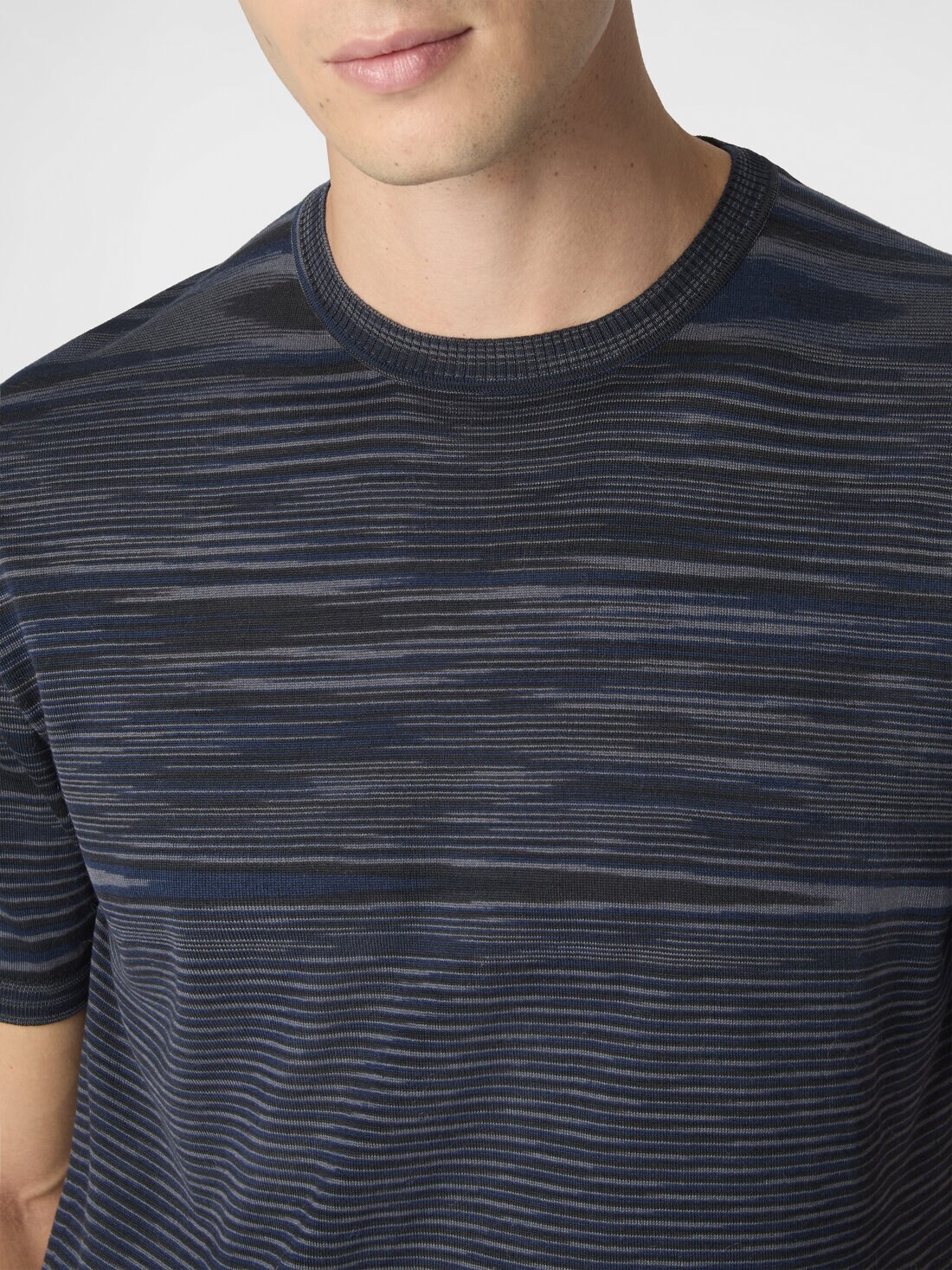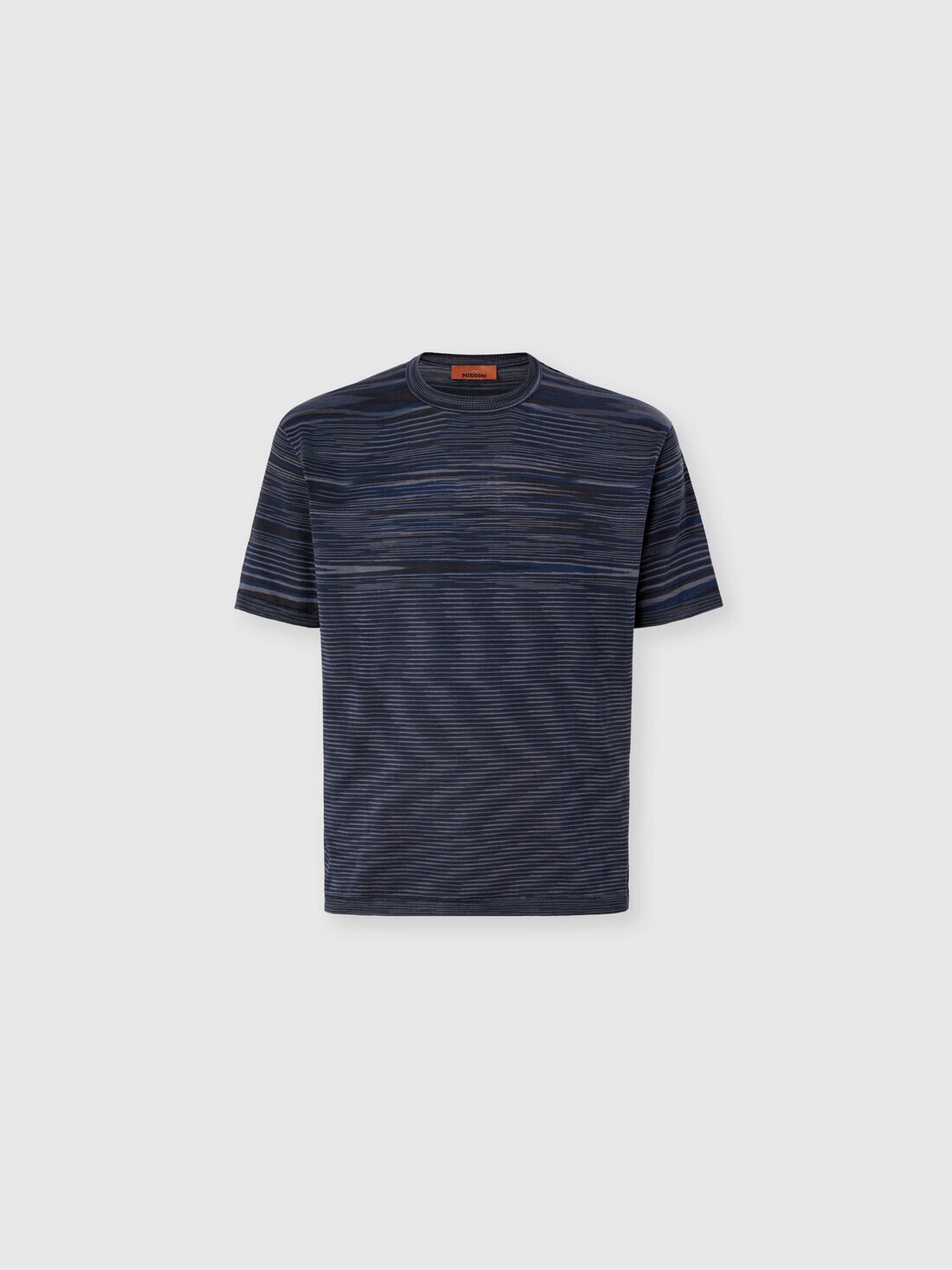 Crafted from slub mercerized cotton, this men’s crew-neck short-sleeved T-shirt stands out for its smooth feel and the sheen of the fabric, the result of a process that enhances the quality and brilliance of the fibers. An essential piece defined by understated, contemporary elegance in true Missoni style.