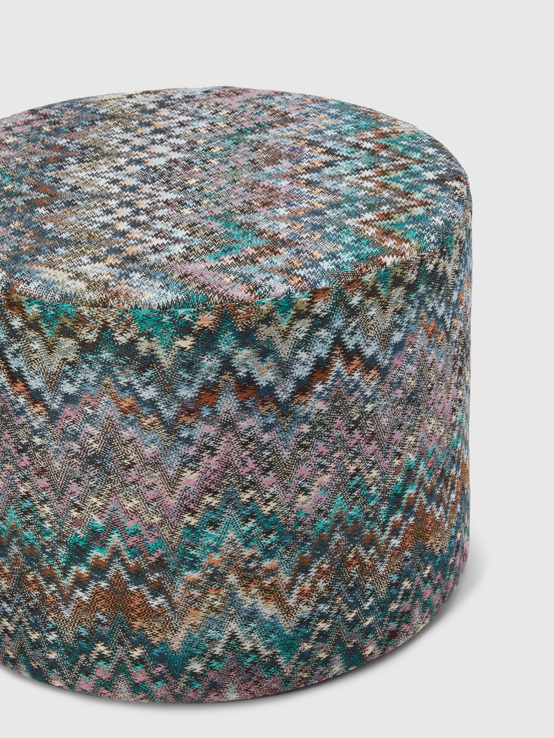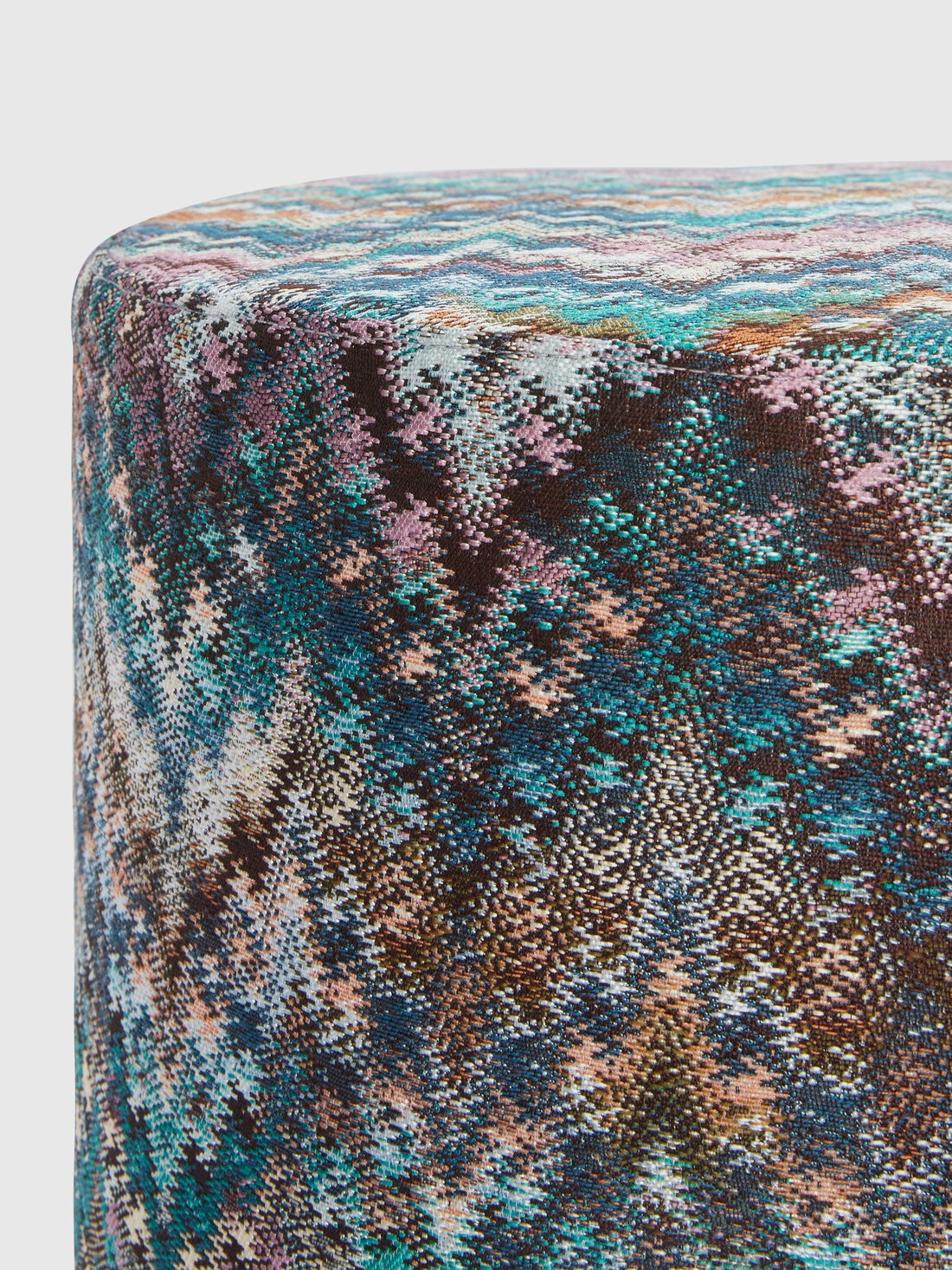 An elaborate irregular chevron pattern characterises the surface of Parrot, the 40x30 cm cylindrical pouffe. The zigzags decorating the pouffe create a fascinating optical illusion effect. Missoni's textile craftsmanship manifests itself in all its beauty in this furnishing accessory. Complete with logo label, the Parrot pouffe represents a perfect fusion of design and craftsmanship.