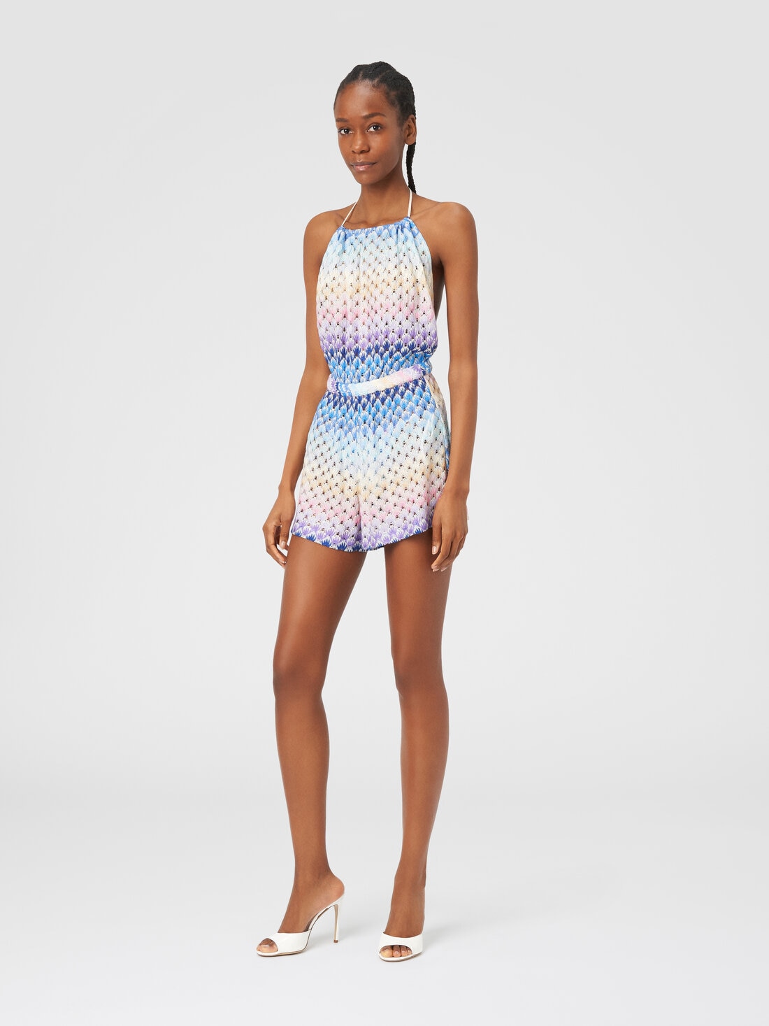 Short jumpsuit in dégradé lace-effect viscose with lurex