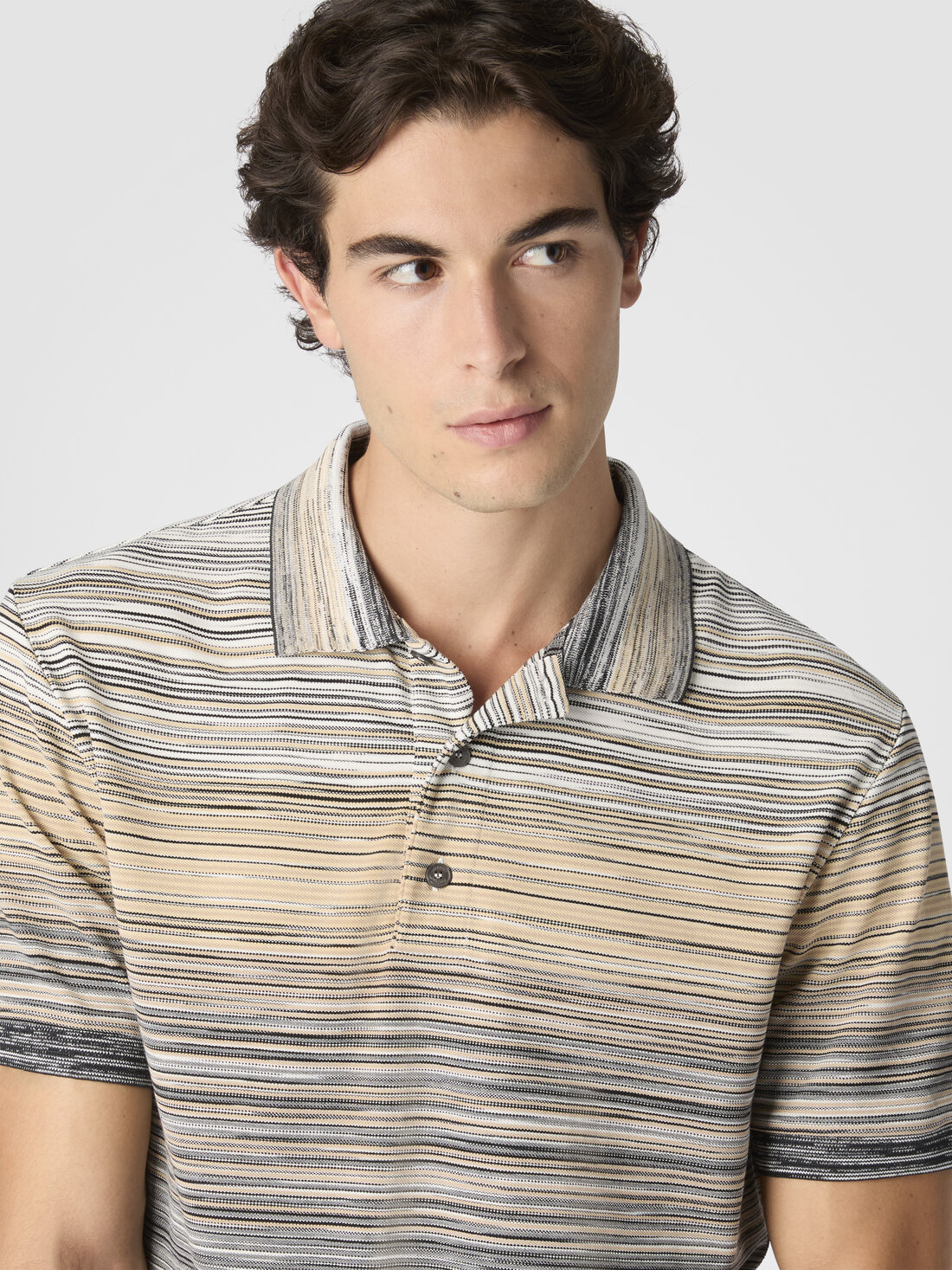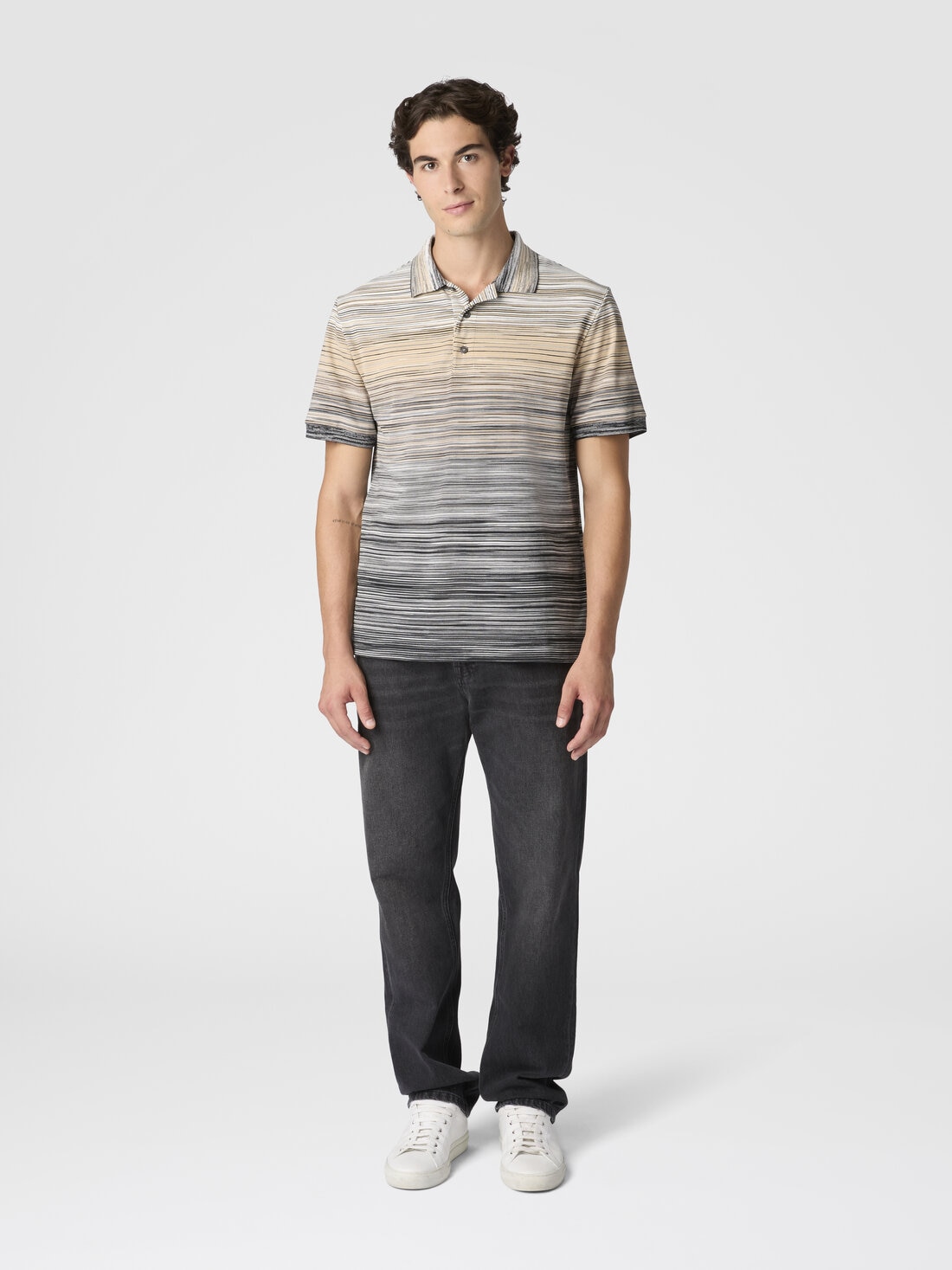 Short-sleeve men’s polo shirt, regular fit, made of shaded slub piqué in 100% cotton. The characteristic play of gradients and fabric quality express Missoni’s understated elegance and refinement, perfect for a fresh, contemporary look.