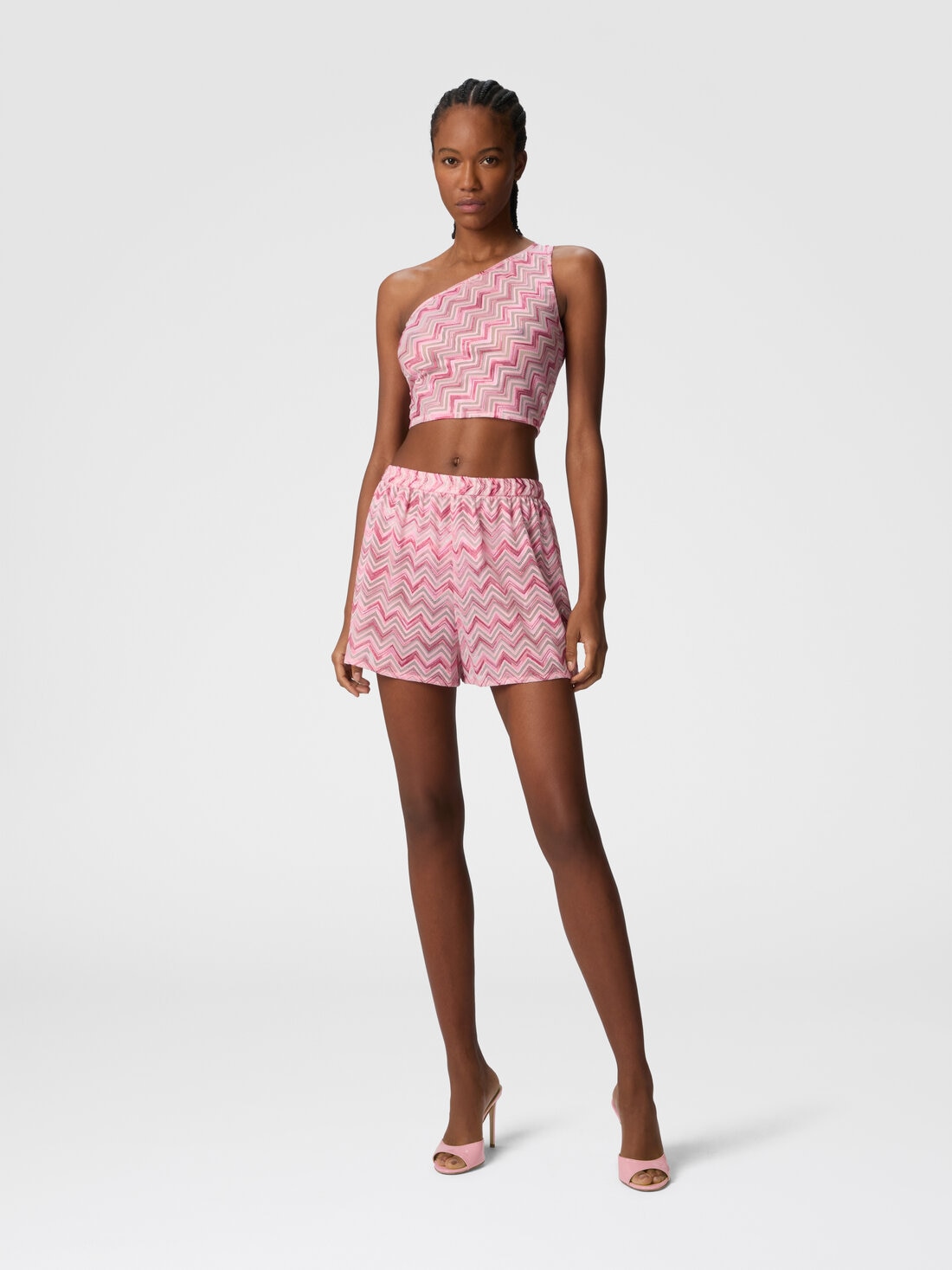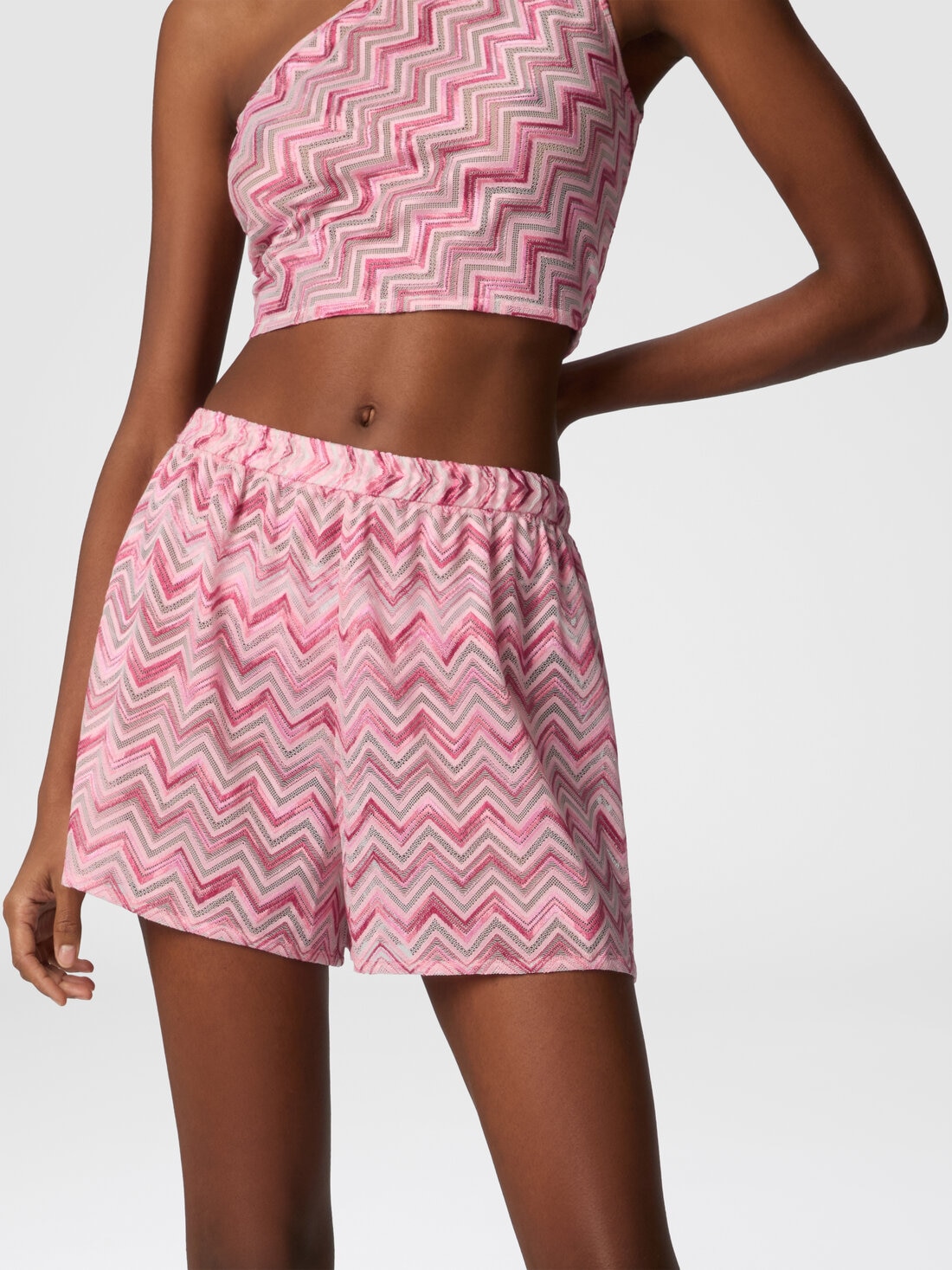 Viscose-blend tulle shorts with slub zigzag