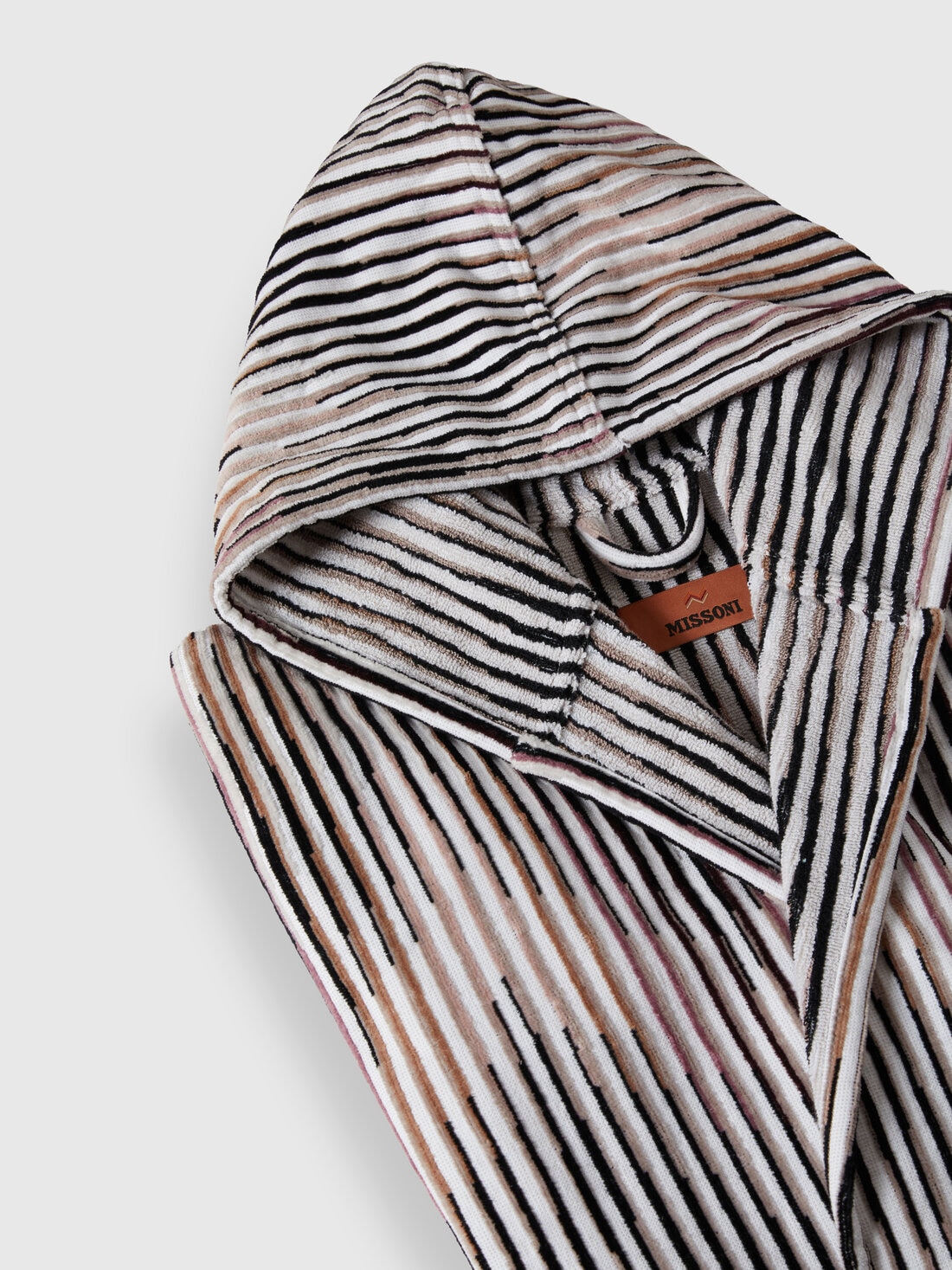 In addition to the famous patterns that have marked its history, MissoniHome is renowned for the exceptional quality of its home linen. This concept is reflected in the new long hooded bathrobe, which features a high-quality slub cotton terry, complete with waist belt and patch pockets.