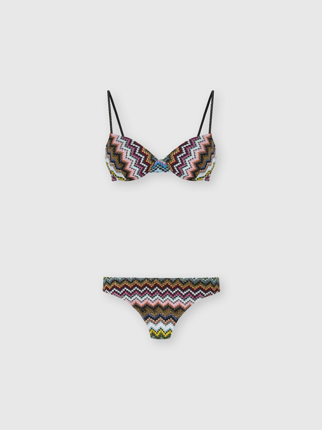 Balcony bikini in lamé viscose with zigzag pixel-effect pattern