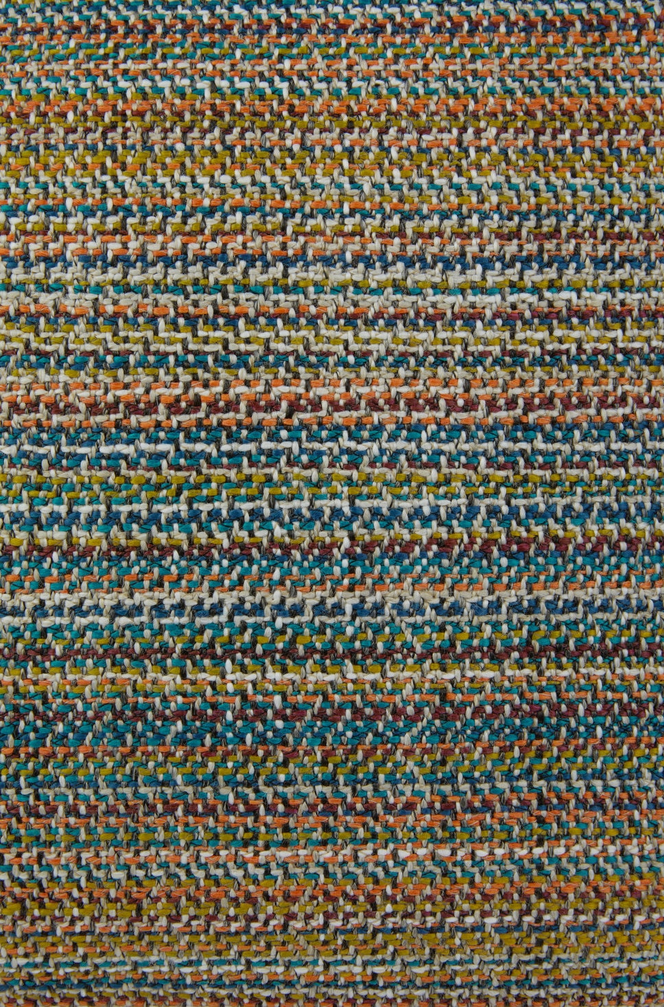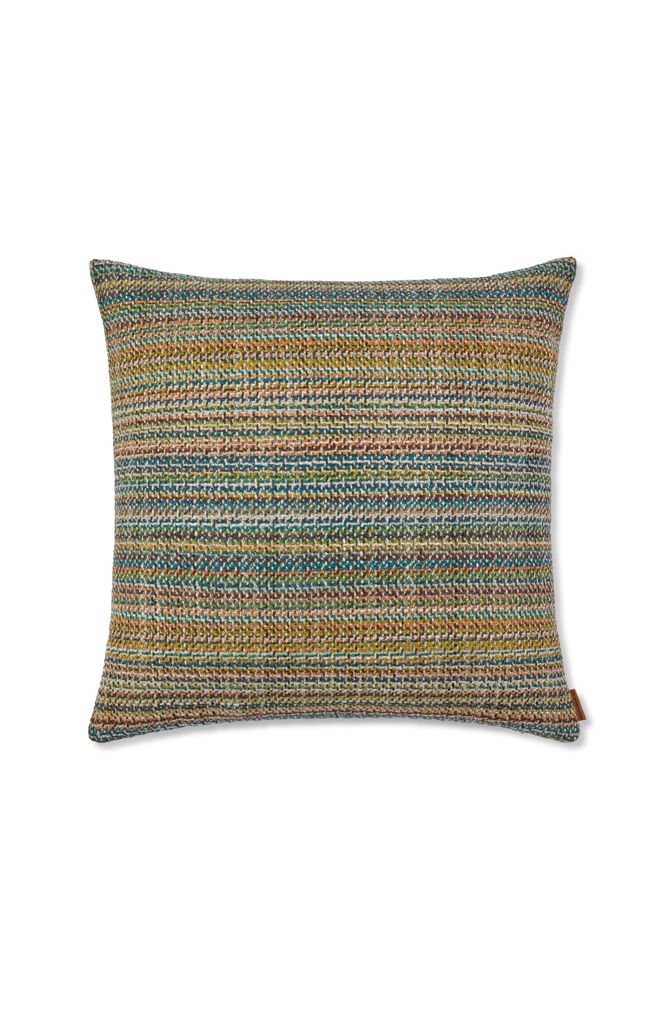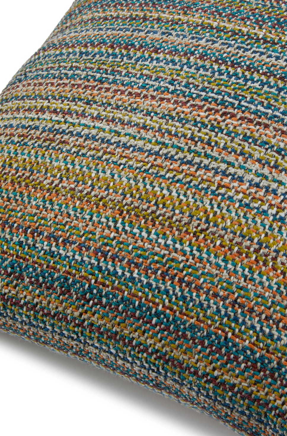 Thousands of rainbow stripes able to exalt the surface of the material as if it were made up of various weaves of a polychrome mosaic, punctuate the texture of the Bolivia cushion in solution dyed outdoor fabric. MissoniHome continues to explore the numerous expressive possibilities of materials and colour combinations, in line with its own idea of sophisticated and timeless living.