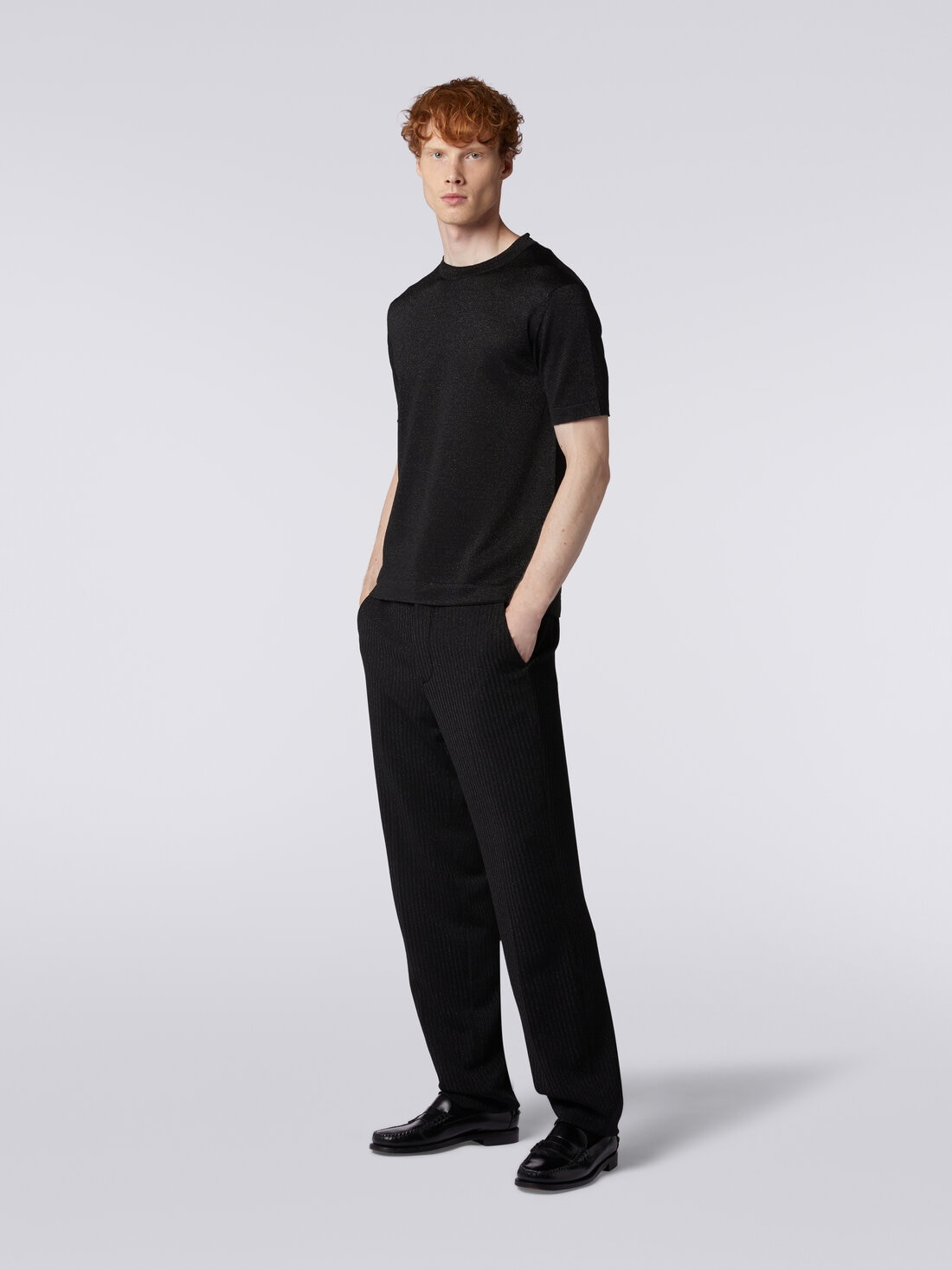 A straight cut and chino length give the refined men’s trousers by Missoni an impeccable fit. The piece made of viscose blend knit, with tone-on-tone raschel, is lit by the lunar glow of the lurex thread.