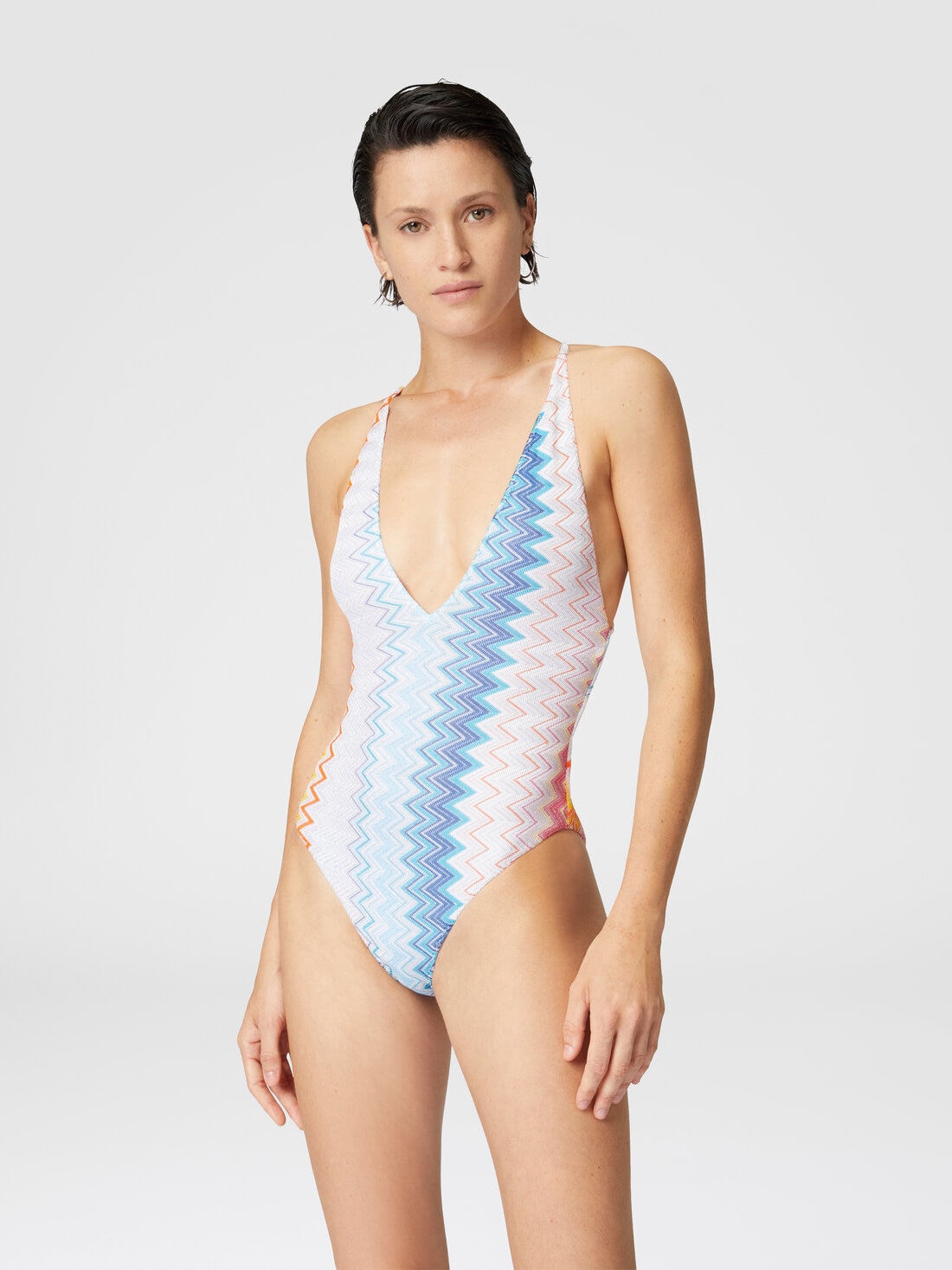 V-neck viscose blend zigzag lamé one-piece swimsuit