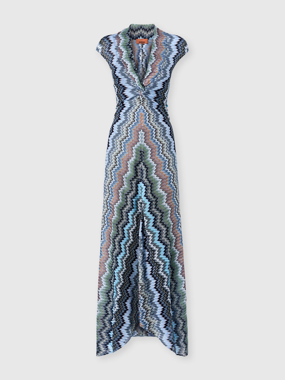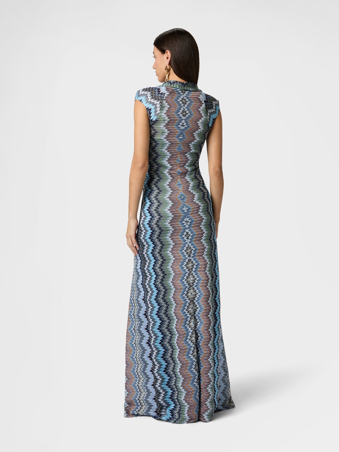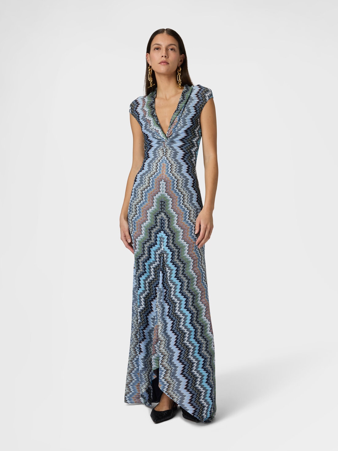Viscose Chevron Snake-Pattern Gown with Tie Neckline