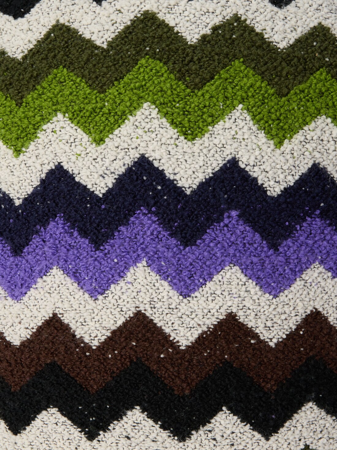 An alternative and modern piece of furniture that combines Missoni’s signature pattern with new geometric forms. The Riccio panettone pouf (50x50 cm) is a unique design piece. Made from soft bouclé, it features the brand’s classic zigzag motif, reinterpreted in an innovative shape that enhances any space.