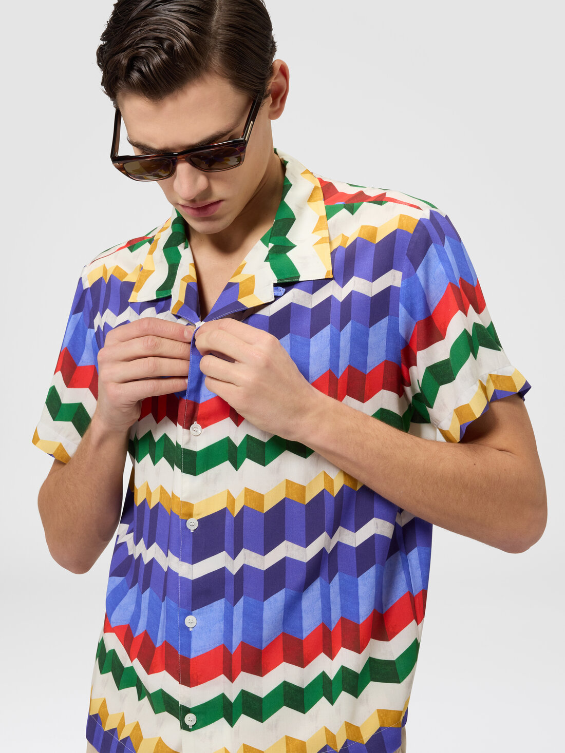 Missoni’s zigzag becomes three-dimensional in this men’s bowling shirt in viscose, where the 3D print adds movement and depth to the fabric, renewing a Maison symbol with modern flair.