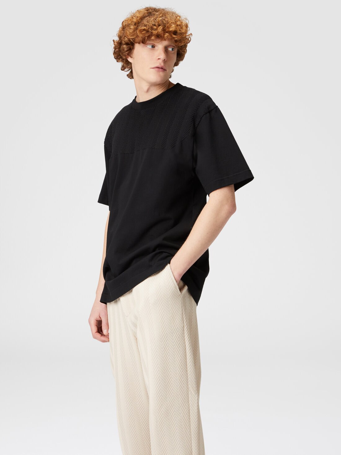 Boxy fit and zigzag insert give character to the newest crewneck t-shirt. Made of cotton jersey and in the purest Missoni style.
