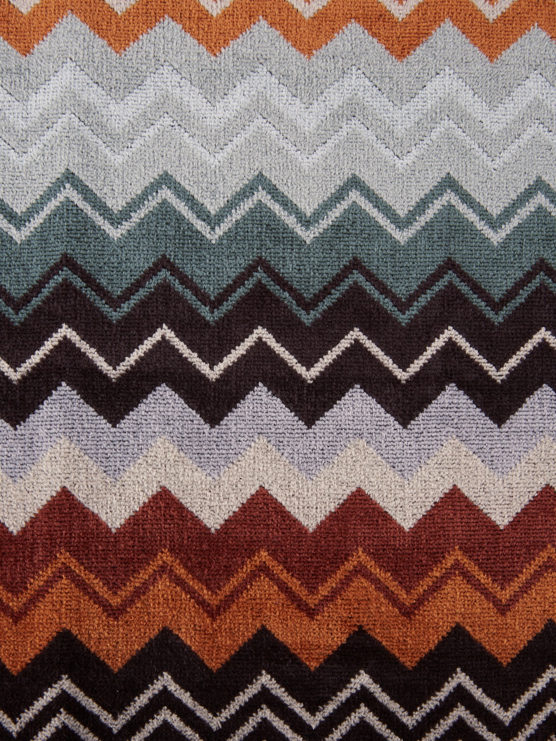 The Giacomo two-piece towel set is the quintessence of Missoni style: here, the quality of the velour cotton terry meets the definition of the chevron print, which dips into the striped edges to enliven this beautiful and timeless pair of face and guest towels.