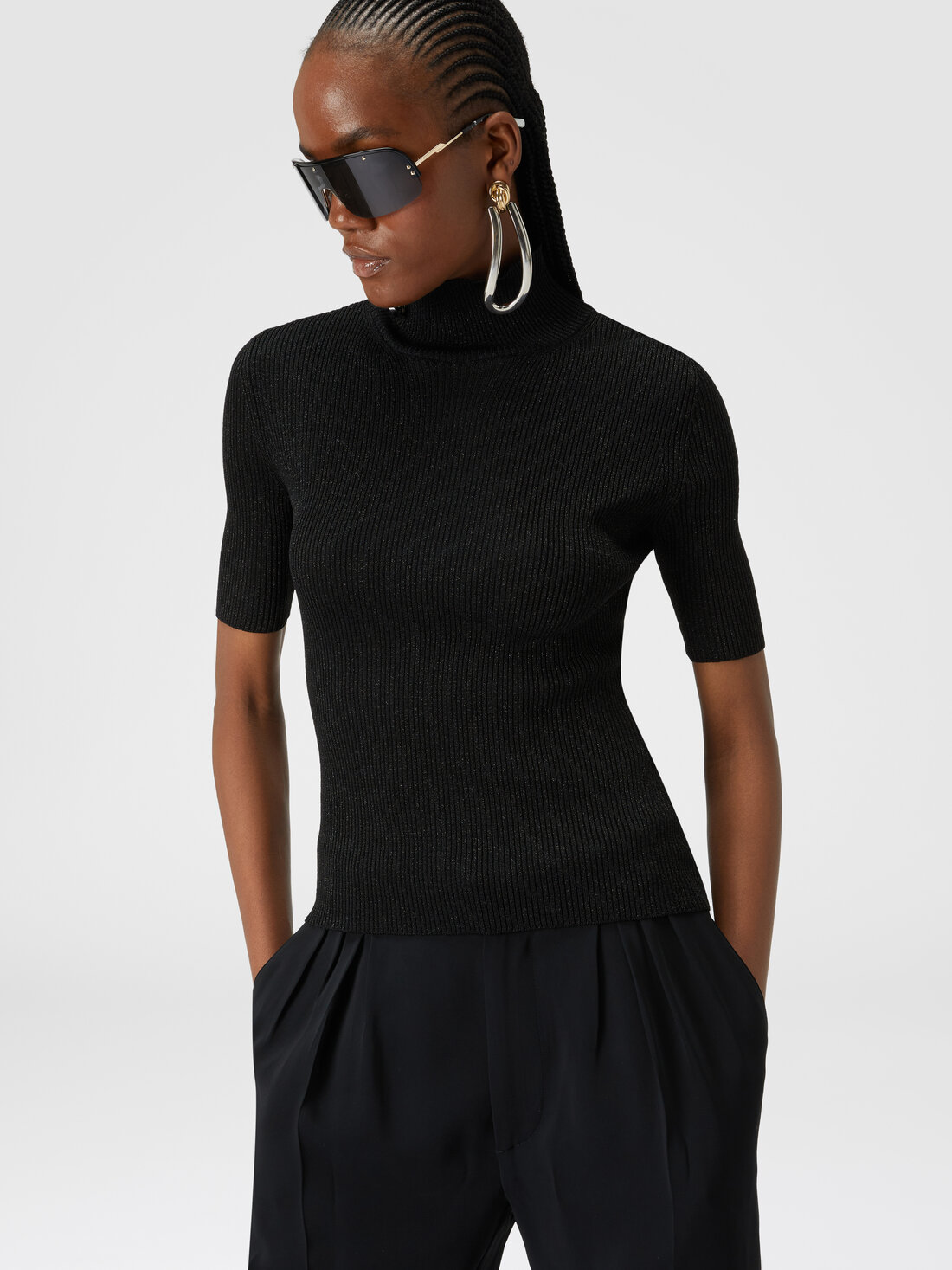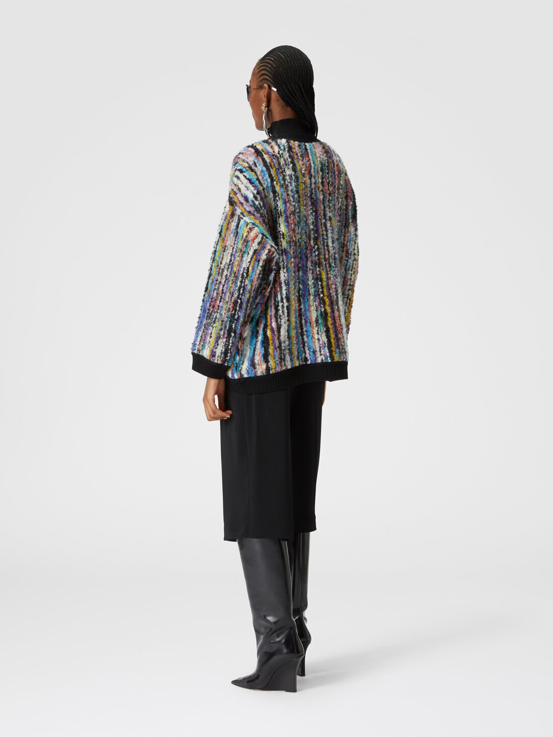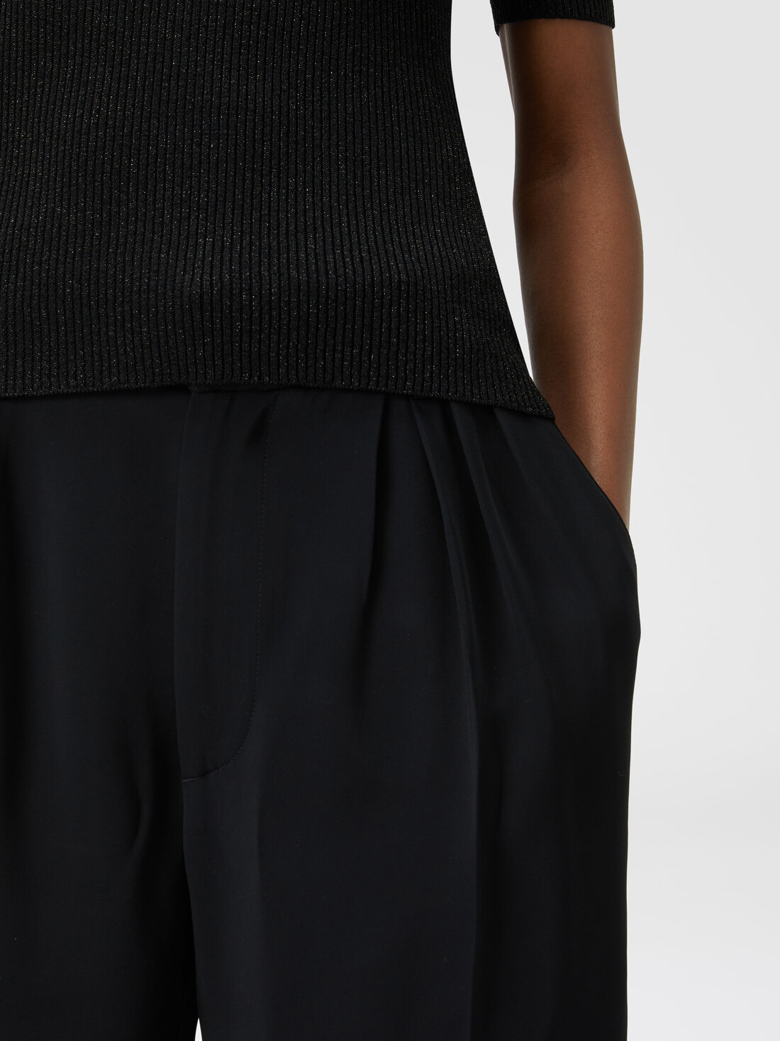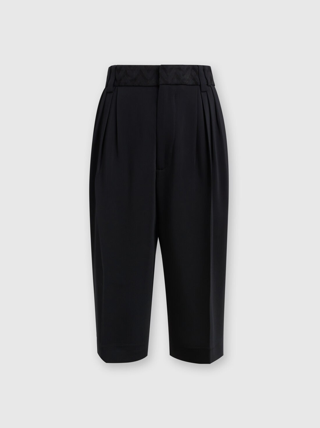 An elegant classic cut with pleats emphasizes the design of the Bermuda shorts with side pockets. Made of stretch viscose, the smooth fabric garment is enlivened by the tonal raschel and chevron insert.
