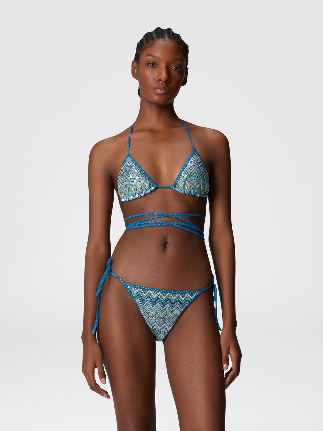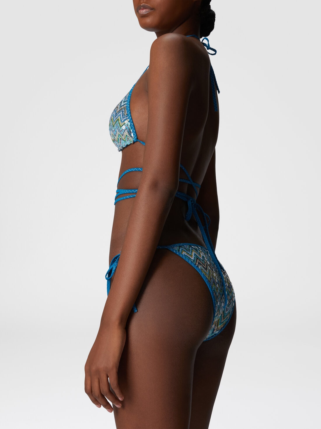 Zig zag lamé viscose bikini with sequins and lace to braid