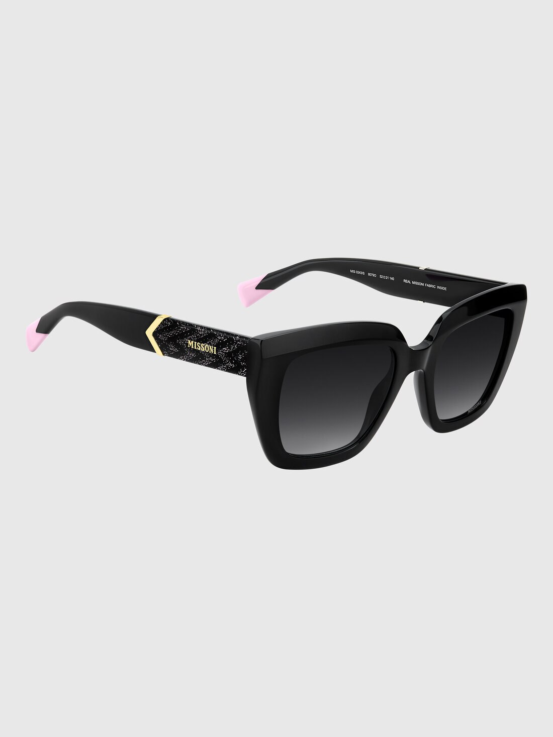 Missoni DNA collection features iconic elements to ensure unique and distinctive complements to your style. Authentic Missoni fabric is embedded on the temple through a tri-layer lamination technique. Rounded and slightly bombè frames.