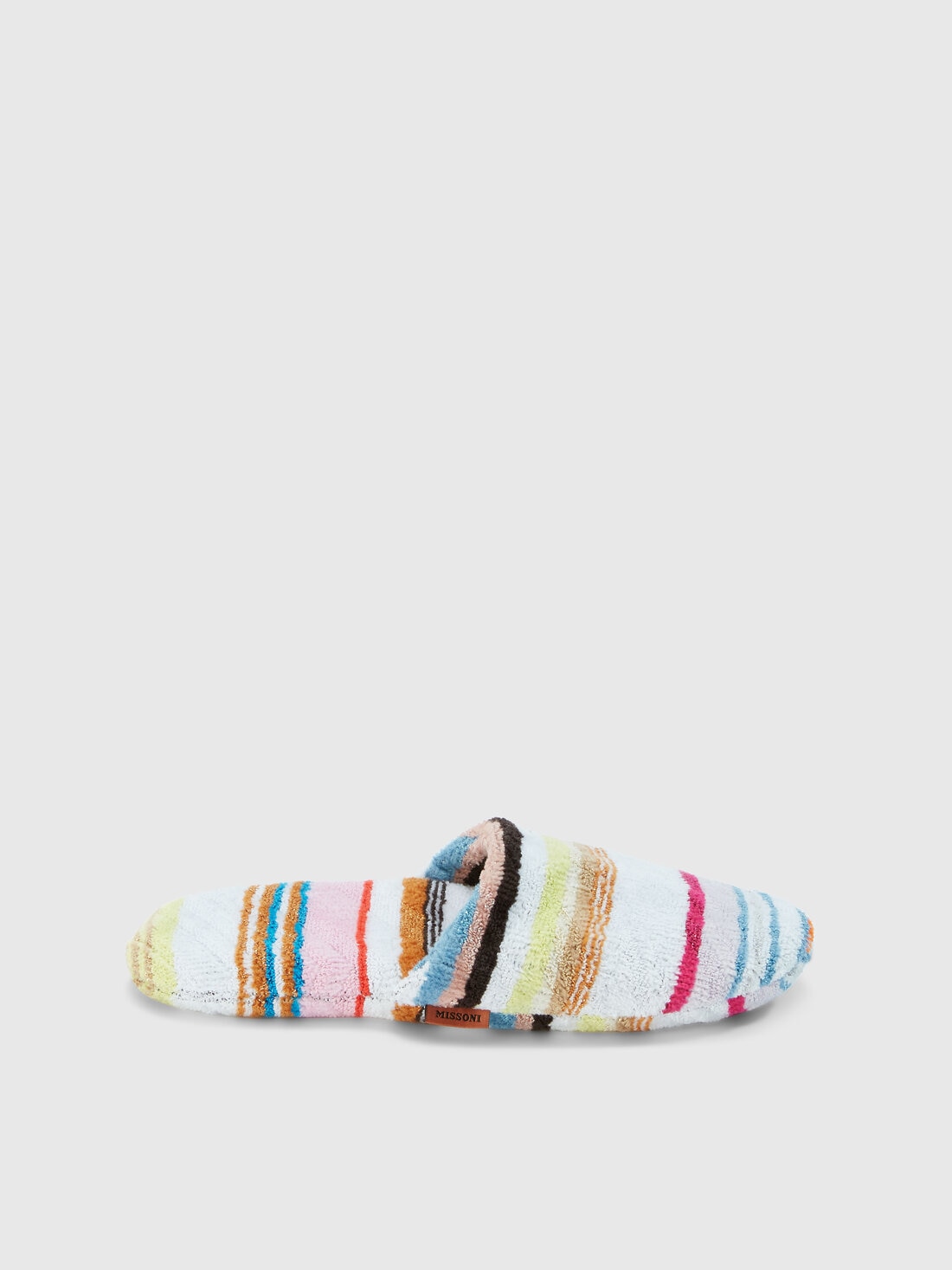 Moonshadow slippers made by MissoniHome offer cosy comfort thanks to their extreme softness. The cotton terry is enriched with lurex threads, which add a touch of brightness. The elegant MissoniHome logo label completes the design.