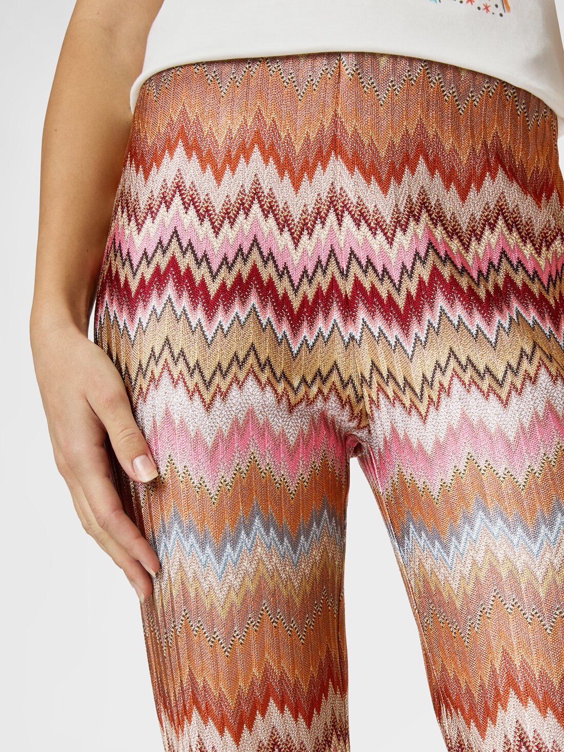 A piece with a graphic and contemporary allure: these cropped flared women’s trousers in 100% viscose with an elasticated waistband combine the chevron motif with the snake pattern, creating a dynamic and distinctive effect.