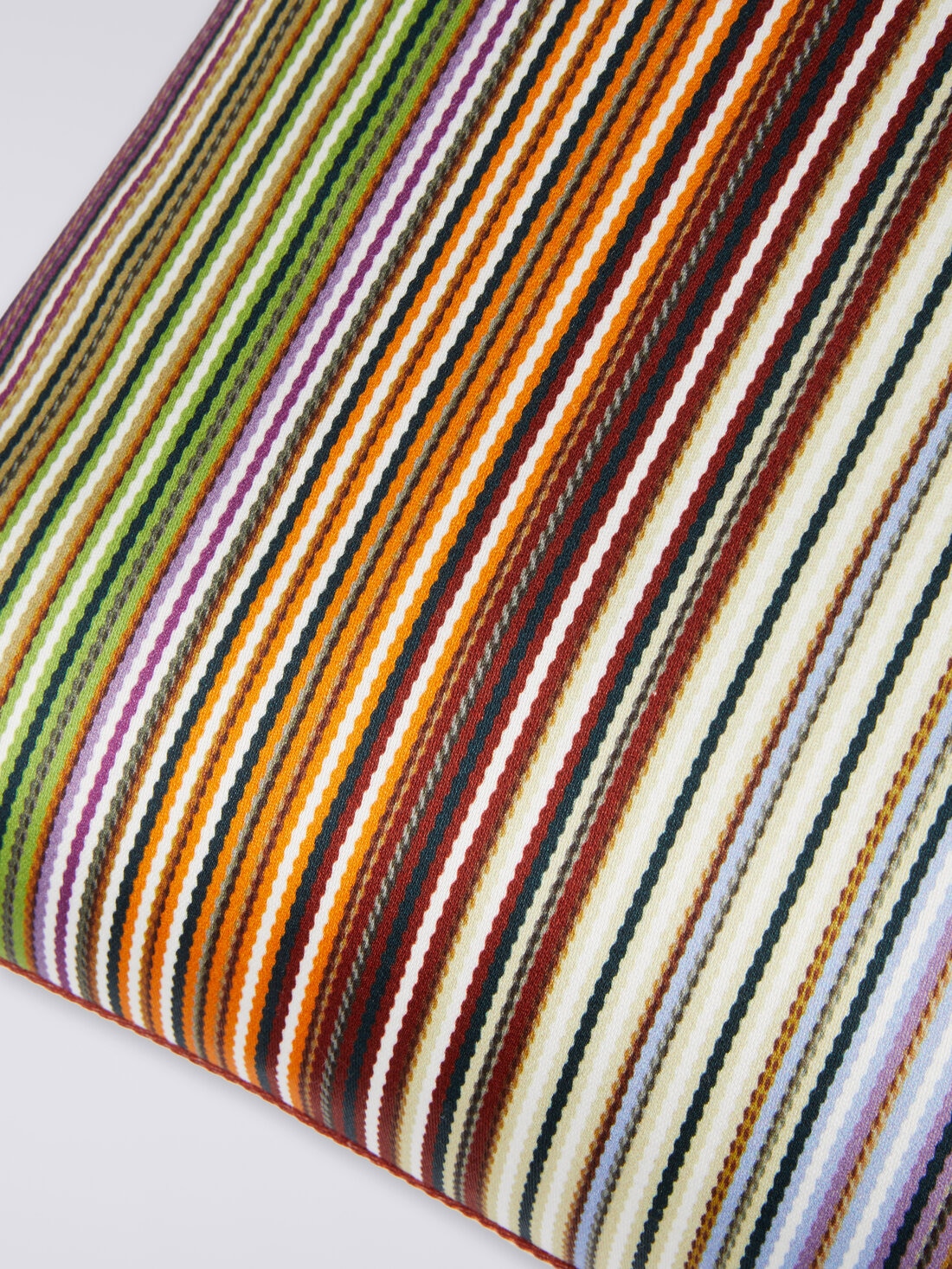 What would appear on the surface to be a simple striped pattern reveals itself, on closer inspection, to be a sophisticated interweave of wavy stripes and hatching. This is how the 40x40 cm Jenkins cushion, made of pure cotton, takes centre stage as a refined textile accessory for the home.