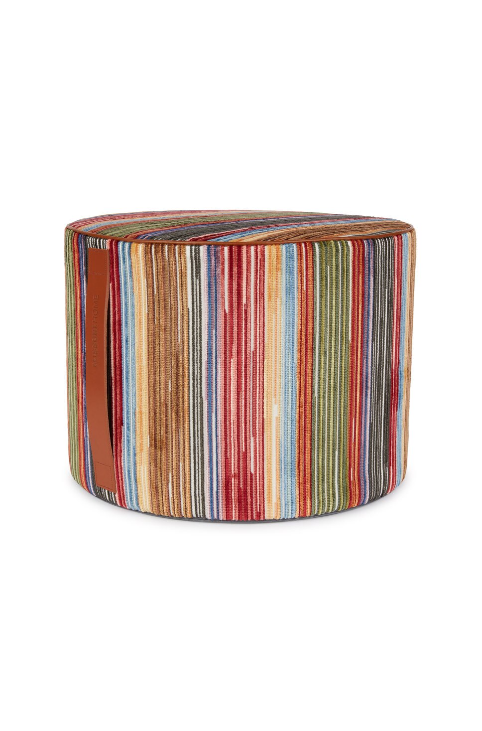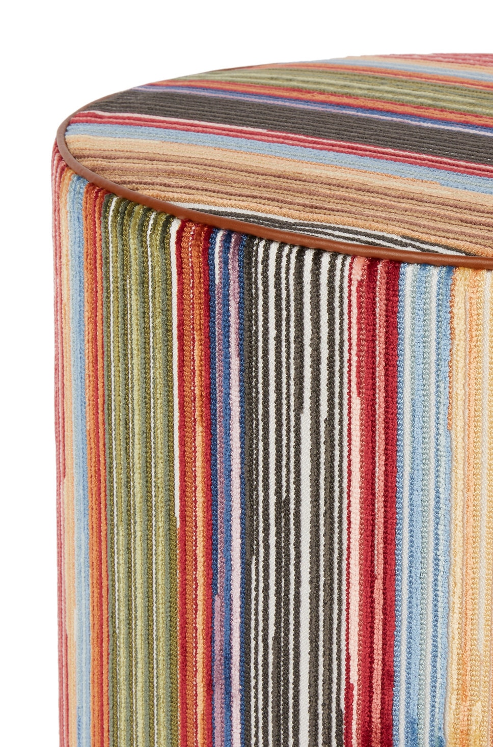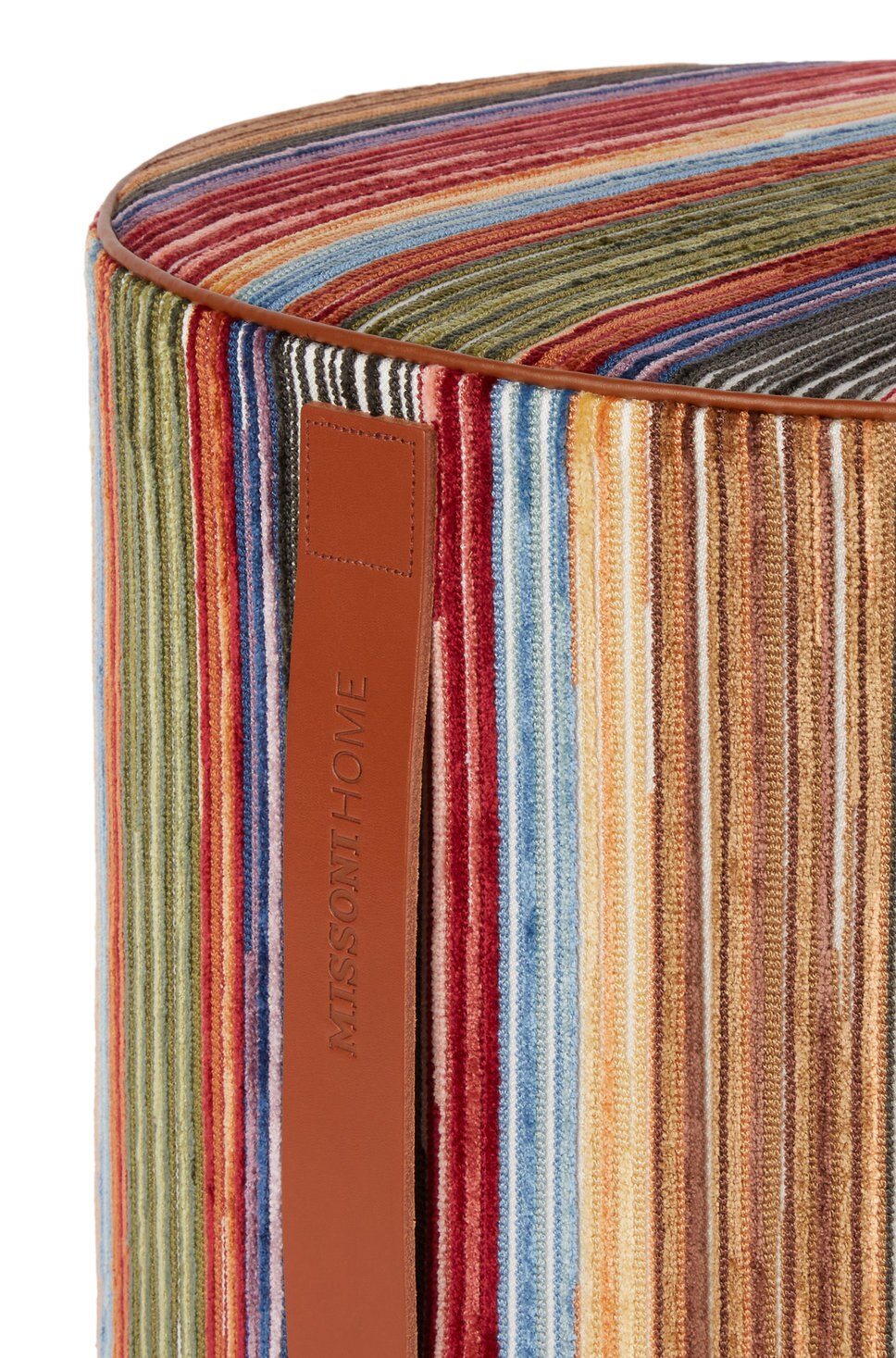 A symphony of soft polychrome layering, like a soft rainbow of post-impressionist flavour, it that which is orchestrated by the colourful texture of the Bangor cylinder pouf, the pouf with the removable cover in dyed striped-yarn viscose velvet fabric and suede handle. MissoniHome gives the umpteenth demonstration of its unequalled ability to pair shadings and prints, each time superbly underlined by the material quality of the surfaces.
