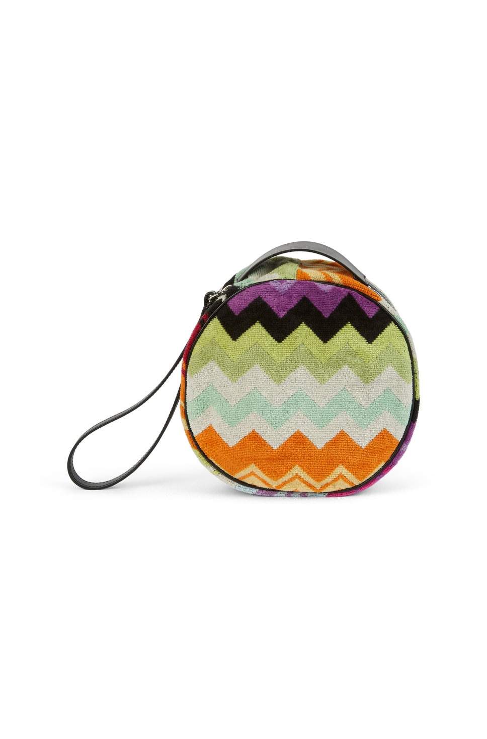 A vibrant take on the iconic chevron pattern, the Giacomo beauty case is made from soft cotton terry. The model has a zipped opening and features a practical faux leather drawstring.