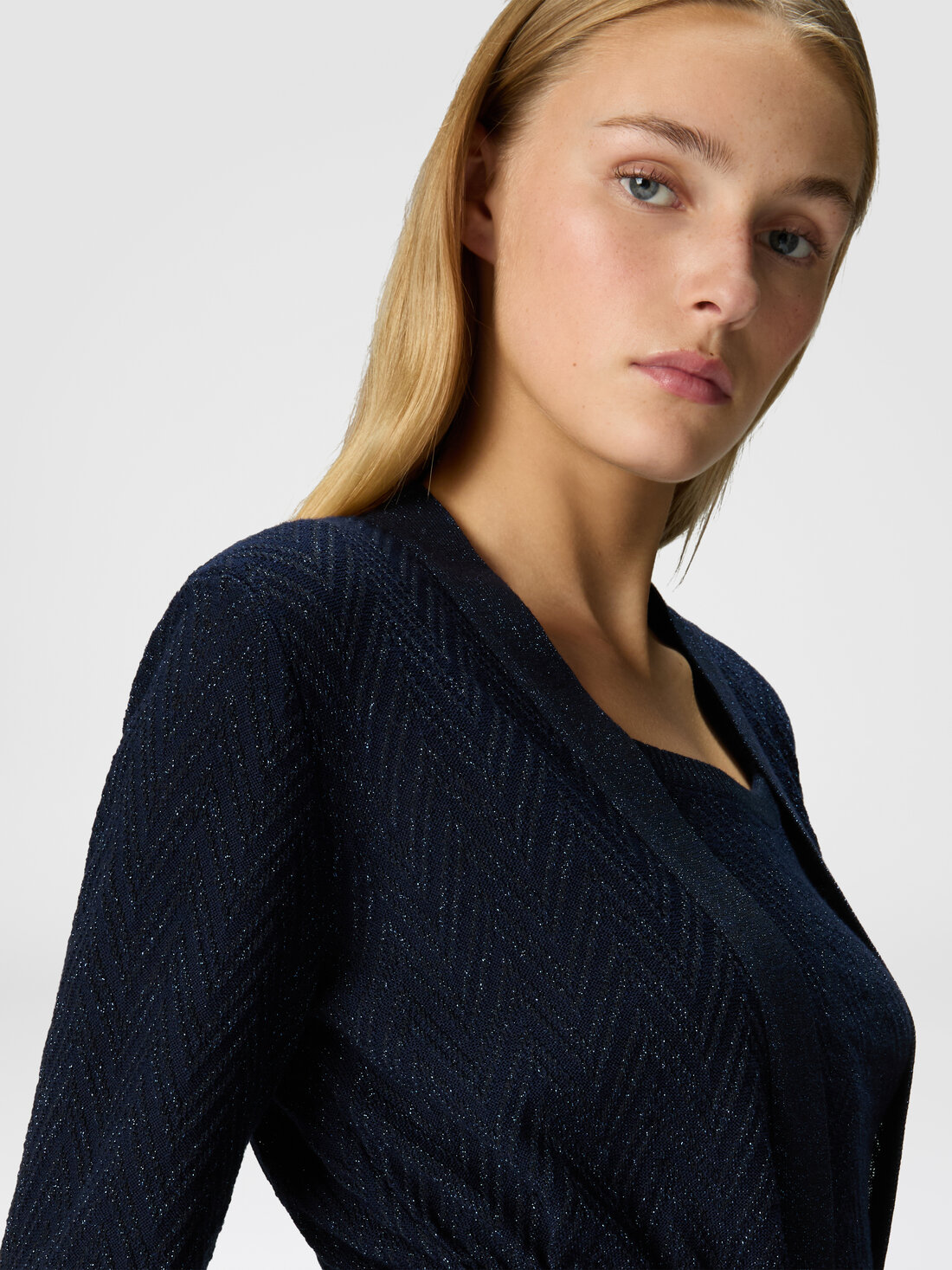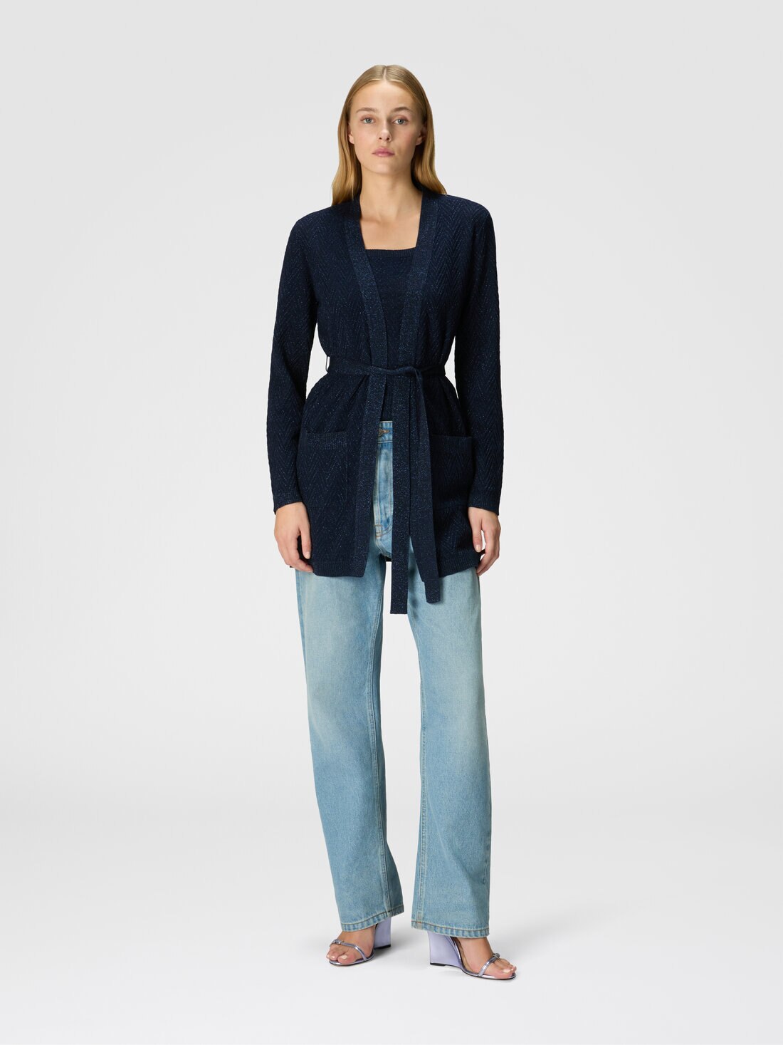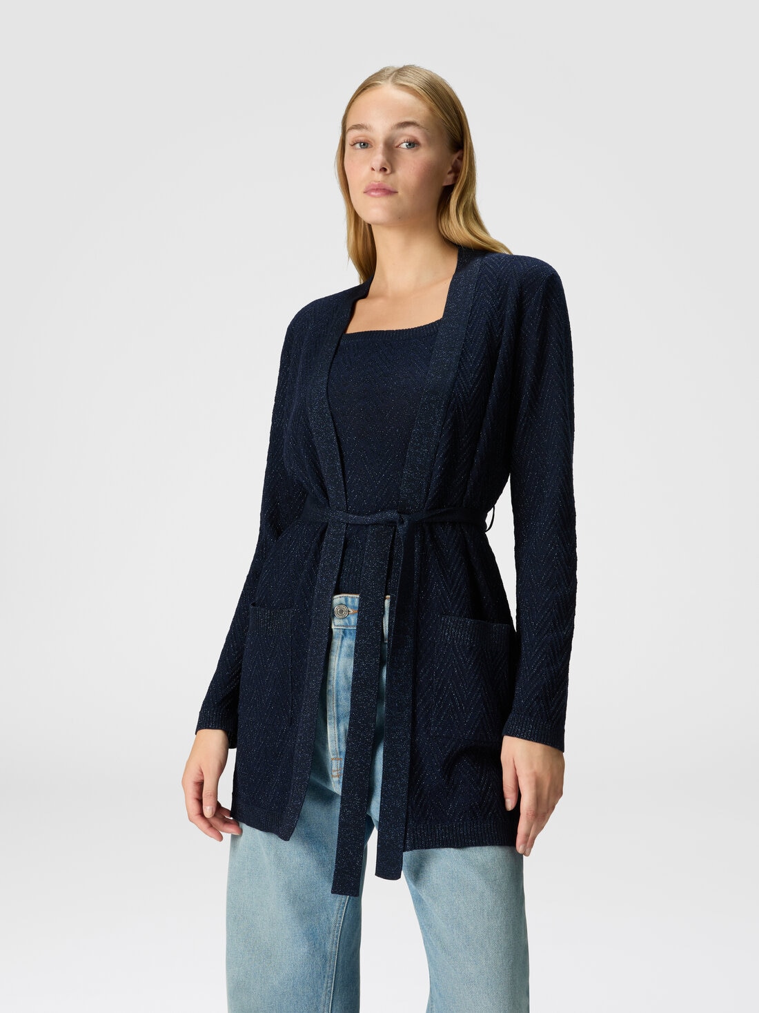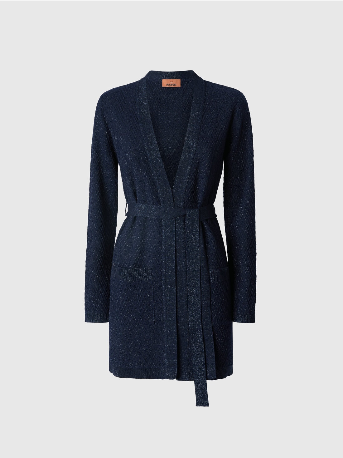 Jacquard chevron belted cardigan