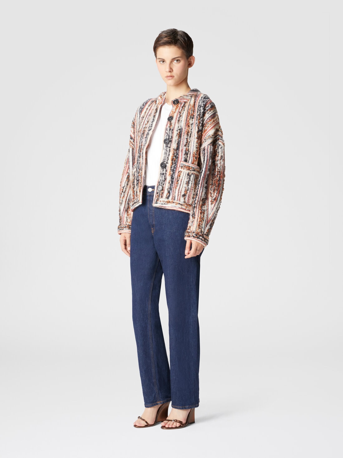 Striped wool, mohair and alpaca blend jacket