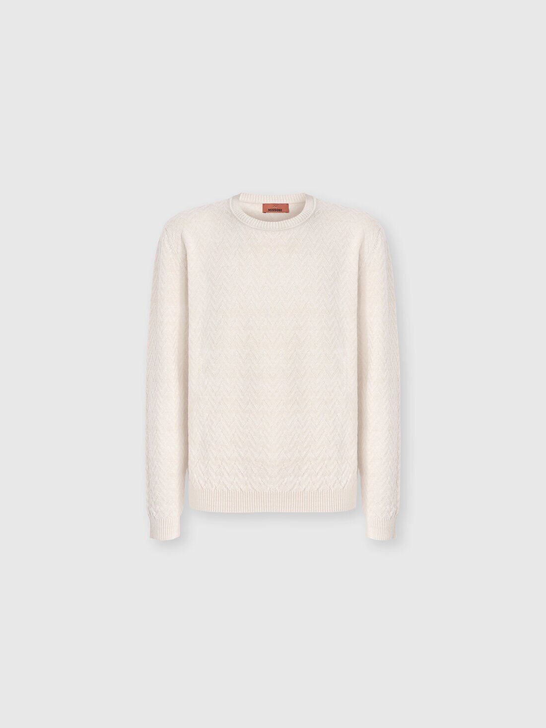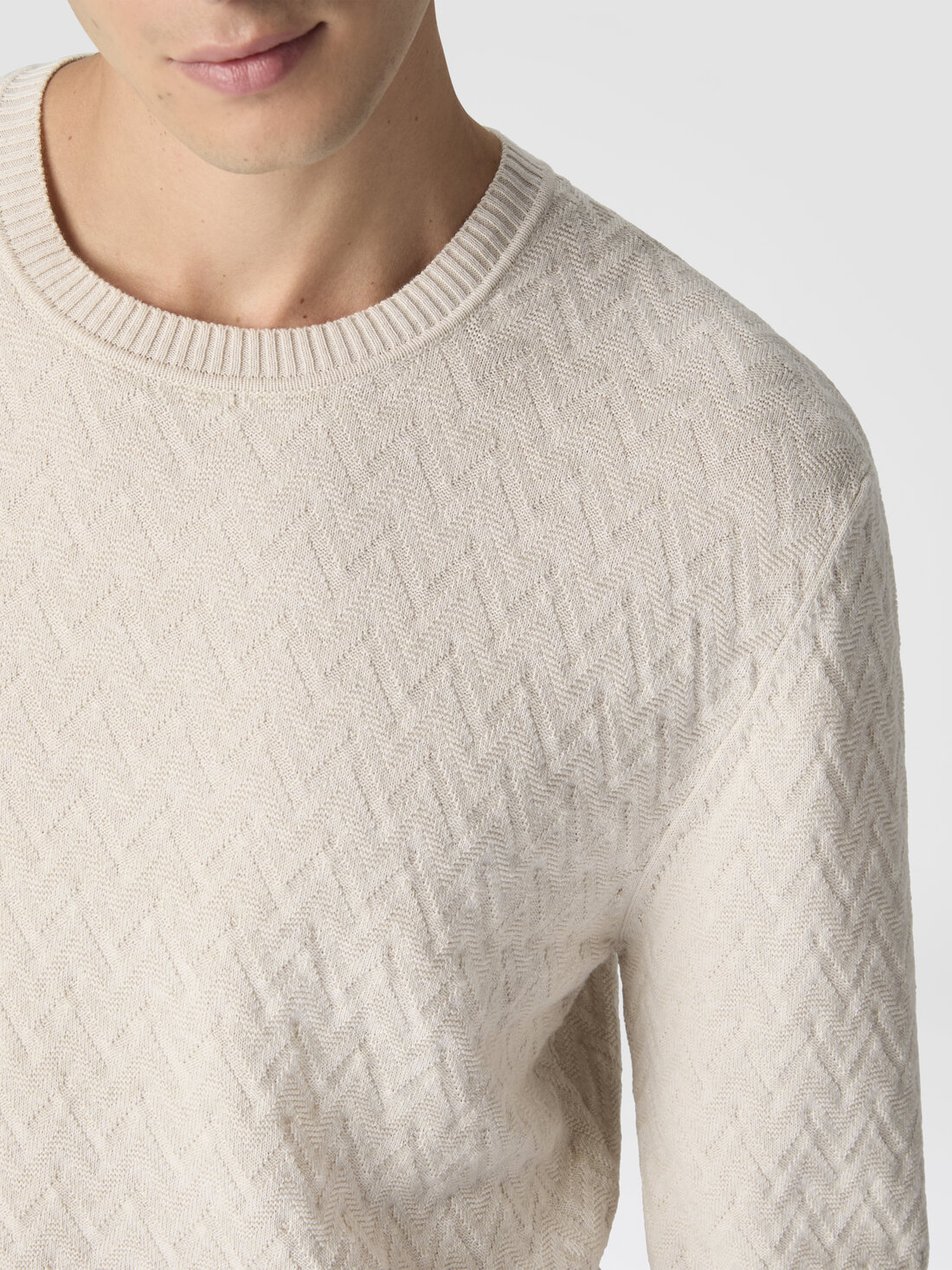 Crew-neck wool and cotton pullover with tone-on-tone zigzag pattern