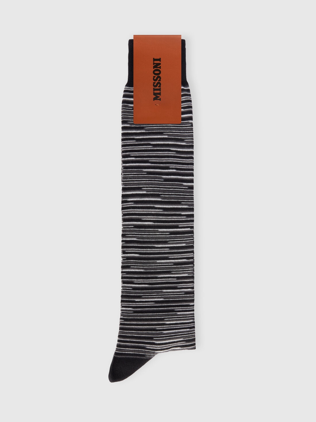 The flame-striped pattern immediately makes it clear that this is an accessory that will elevate your look. As if that weren’t enough, this pair of men’s long socks by Missoni is also personalized with logo lettering on the sole.