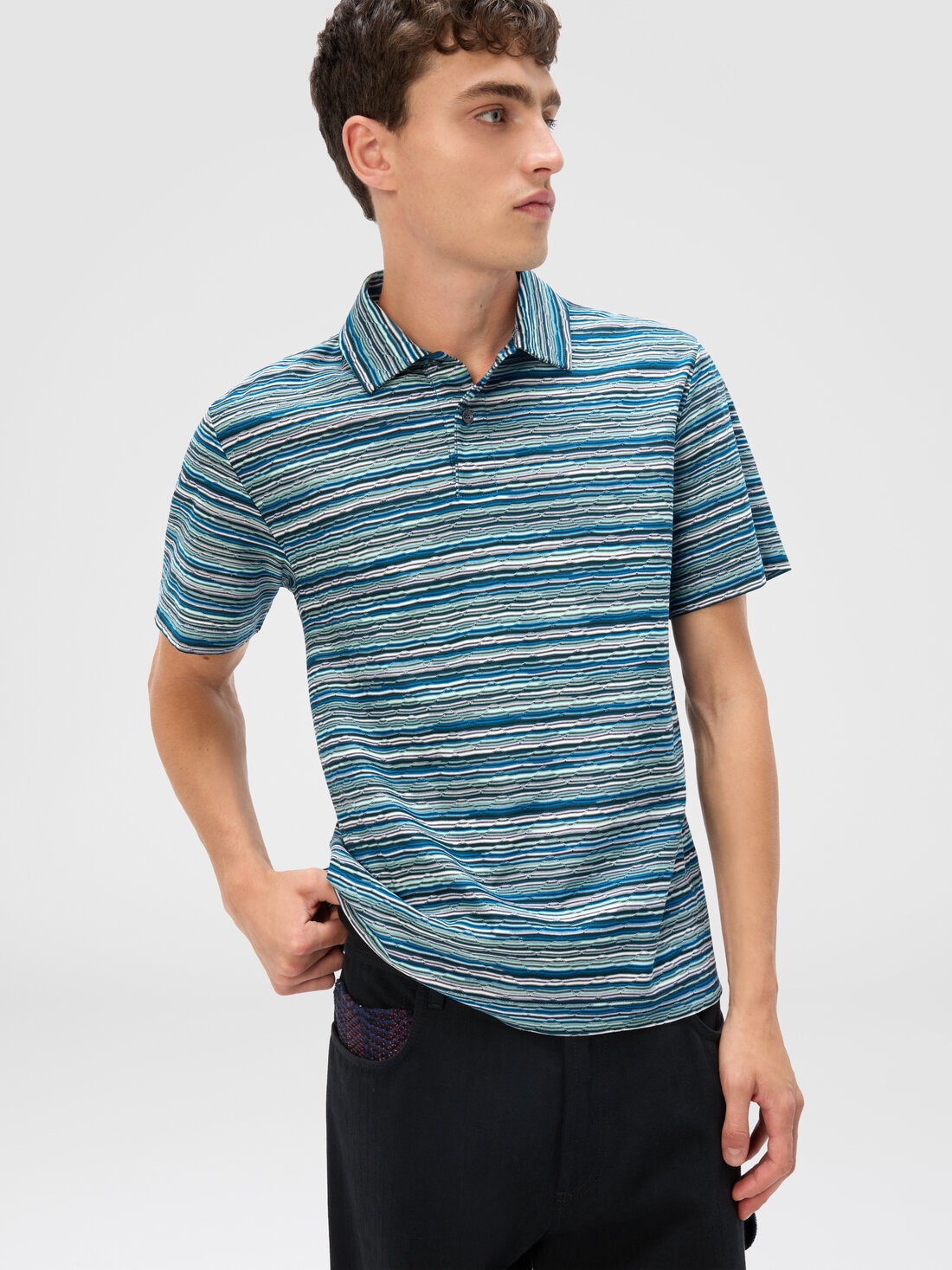 A unique and distinctive pattern defines this short-sleeve men’s polo shirt, regular fit, in striped slub jersey with jacquard zigzag motif. Made in cotton, it combines comfort and style, perfect for those seeking a touch of originality in casual looks.