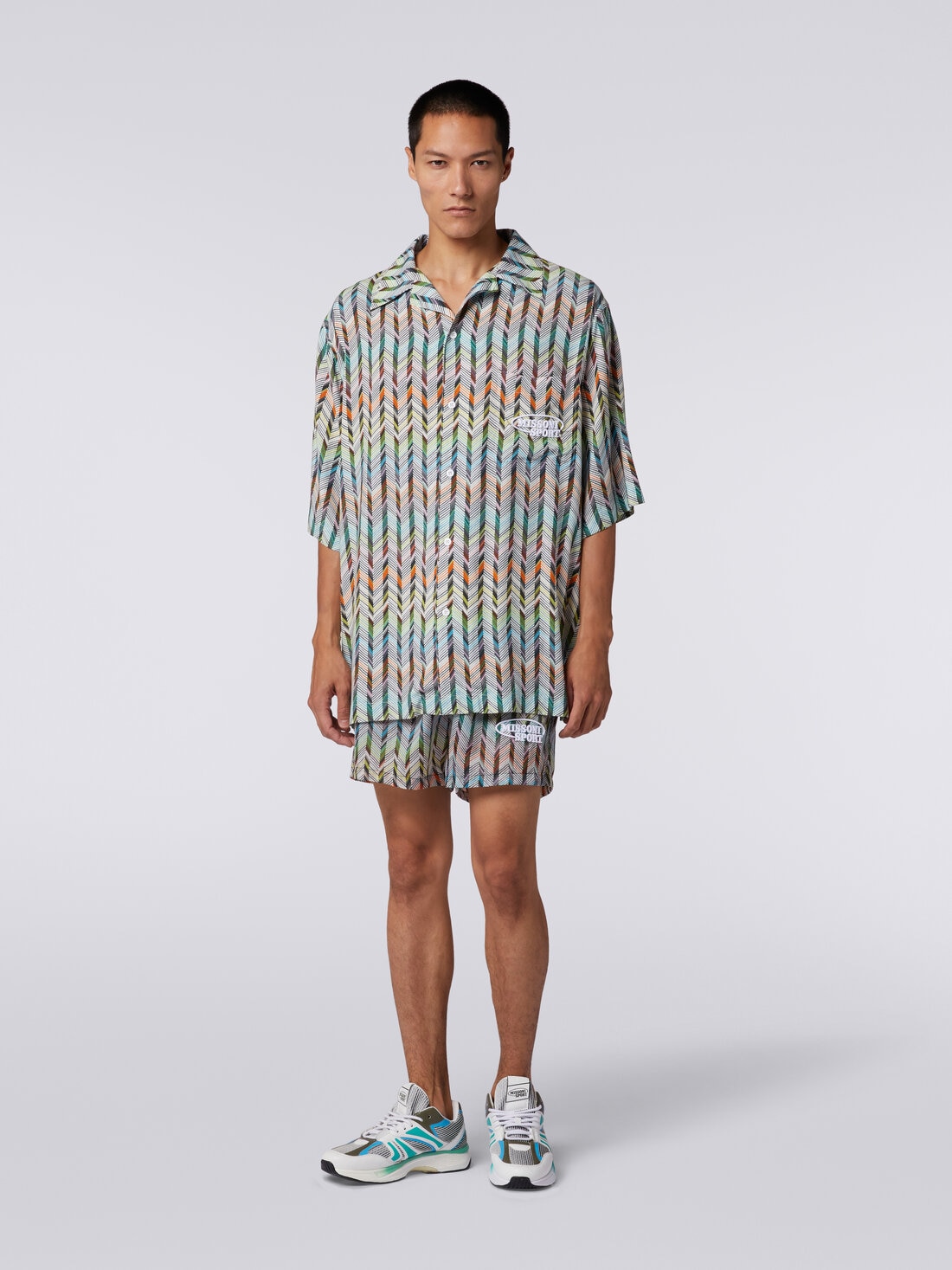 Made of zigzag print nylon with a Caperdoni pattern, the men’s swim shorts are customised with a contrasting embroidered logo, which adds a touch of refined exclusivity to these shorts that are perfect from the beach to the spa.