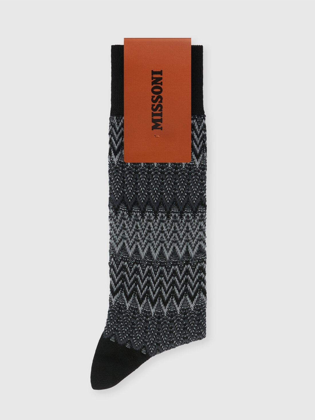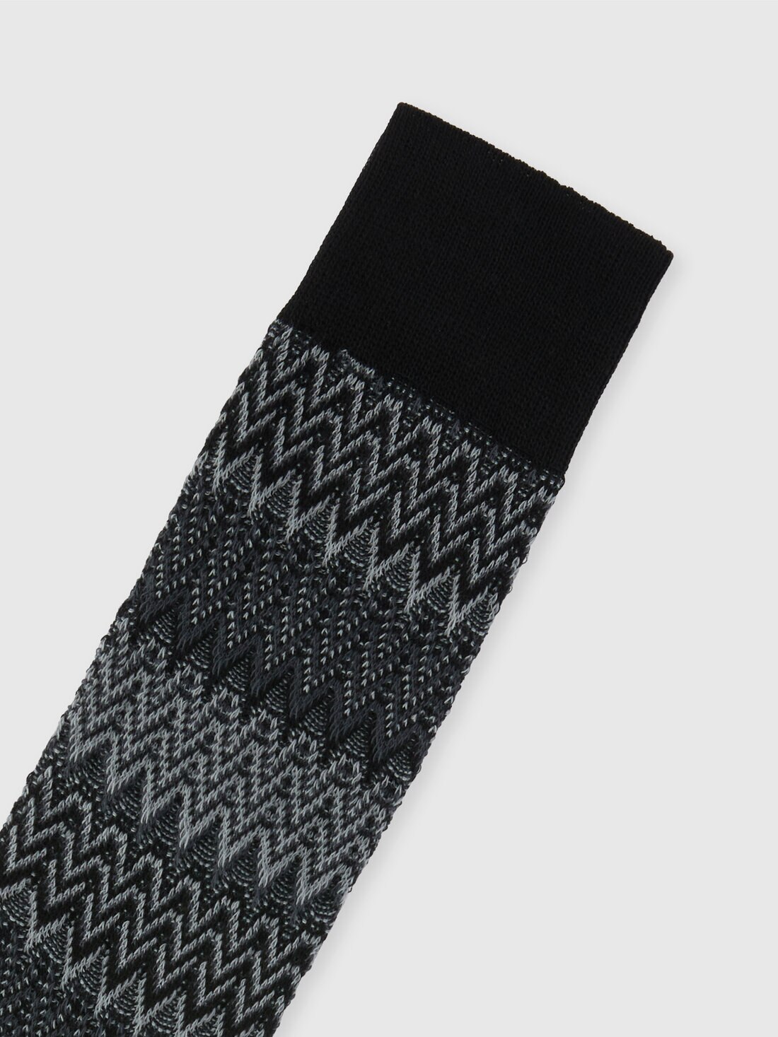 An unmistakable chevron pattern characterizes these men's short socks in a cotton blend. The accessory is finished with contrasting lugs on the heel and toe and a solid color upper edge.