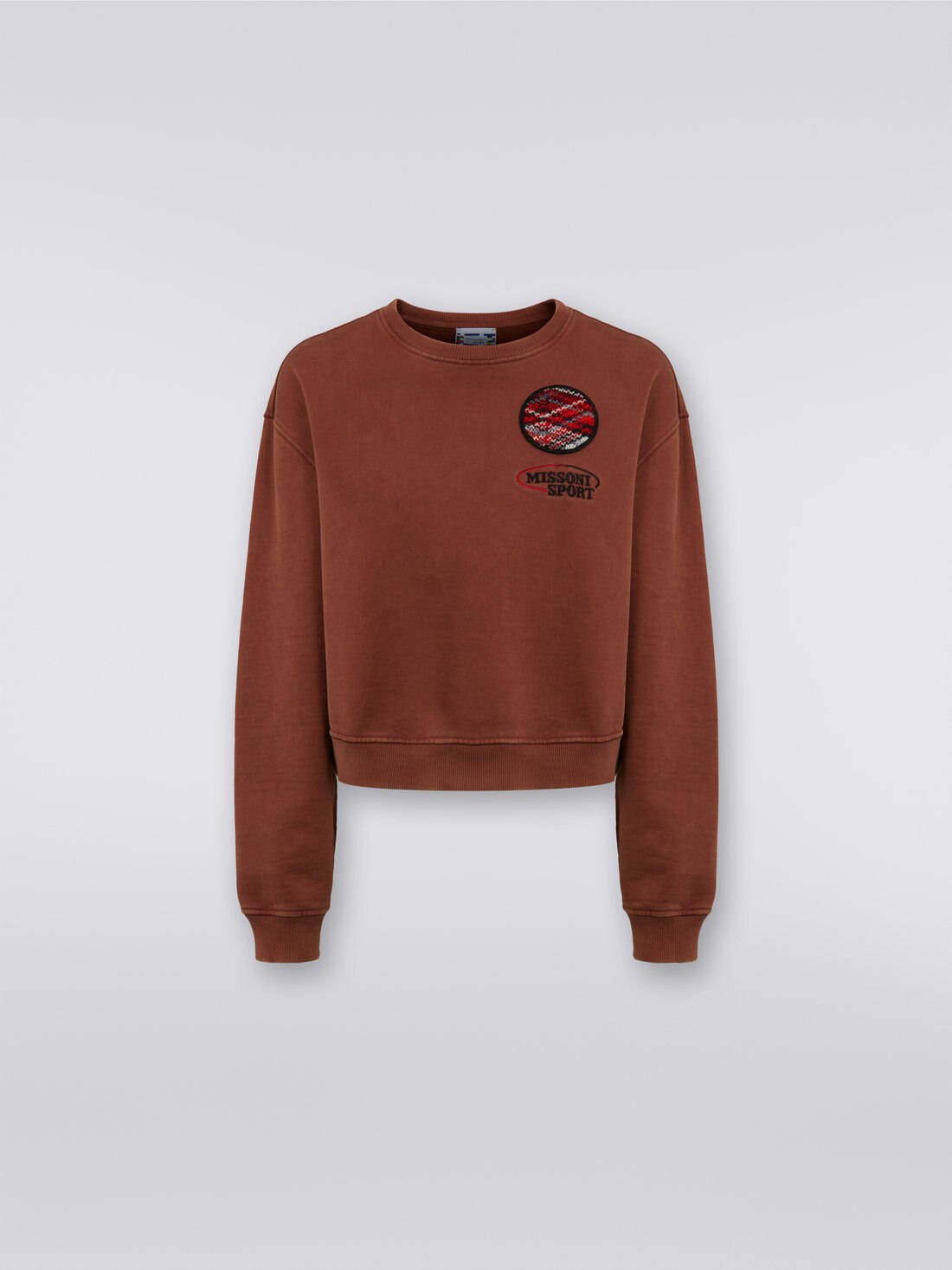 Cotton crew-neck sweatshirt with knitted insert and logo