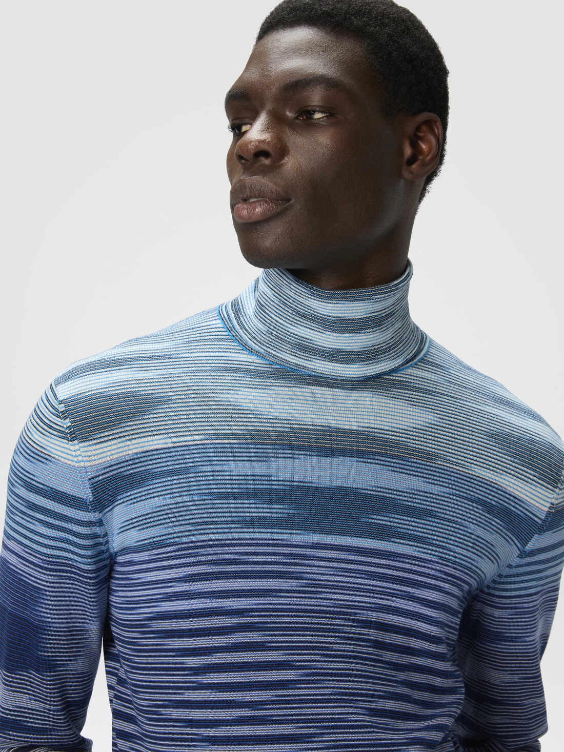 This men’s turtleneck sweater in 100% slubbed wool all-over is a garment that combines warmth and style in a sophisticated way. The slubbed workmanship, which covers the entire surface, creates a richly textured visual effect, giving depth and movement to the design. Ideal for colder seasons, this sweater offers comfort and a distinctive touch, perfect for those seeking an elegant and versatile piece.