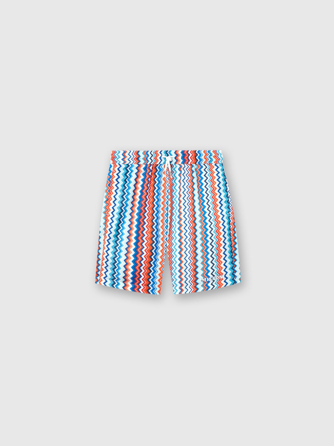 A perfect combination of comfort and style: the Missoni children's beach boxer shorts guarantee maximum comfort without compromising on aesthetics. With the distinctive vertical zigzag pattern, the boxer shorts boast an adjustable waist and the logo lettering.