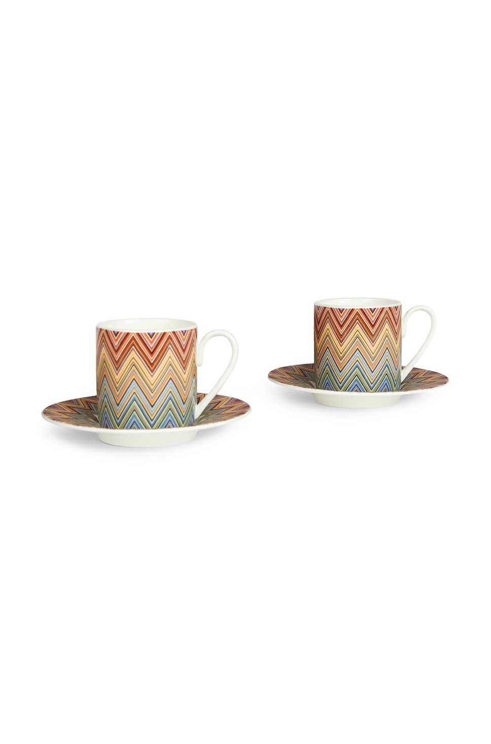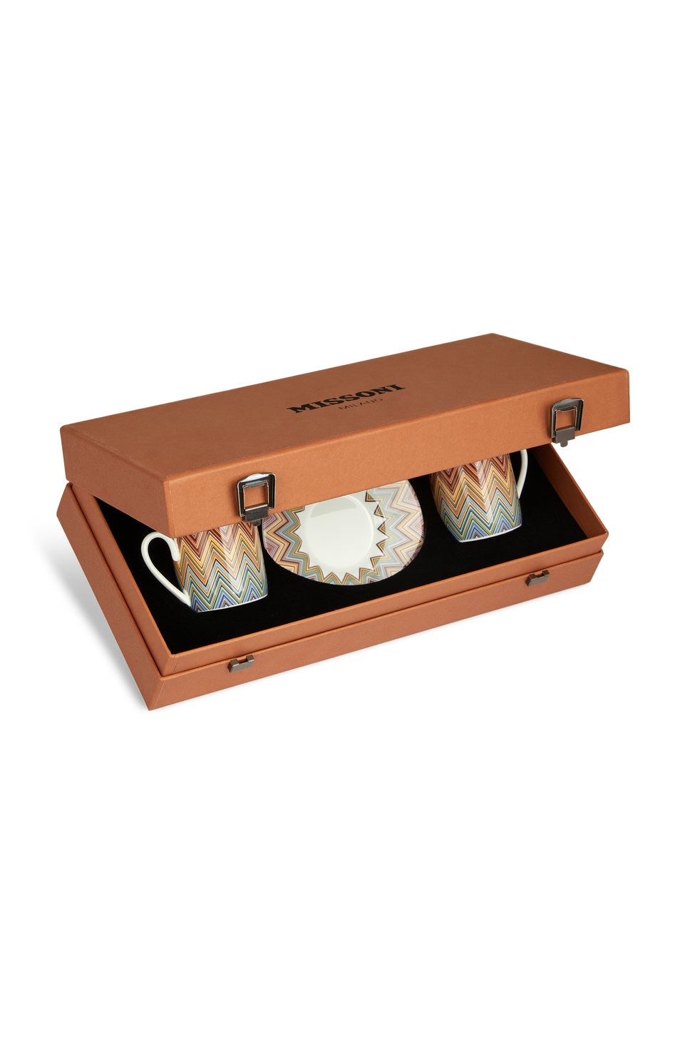 A sophisticated take on the iconic zigzag pattern, the Jarris pattern is the hallmark of this coffee cup and saucer set. The pattern covers the entire surface of these fine porcelain table accessories, presented in an elegant branded box.