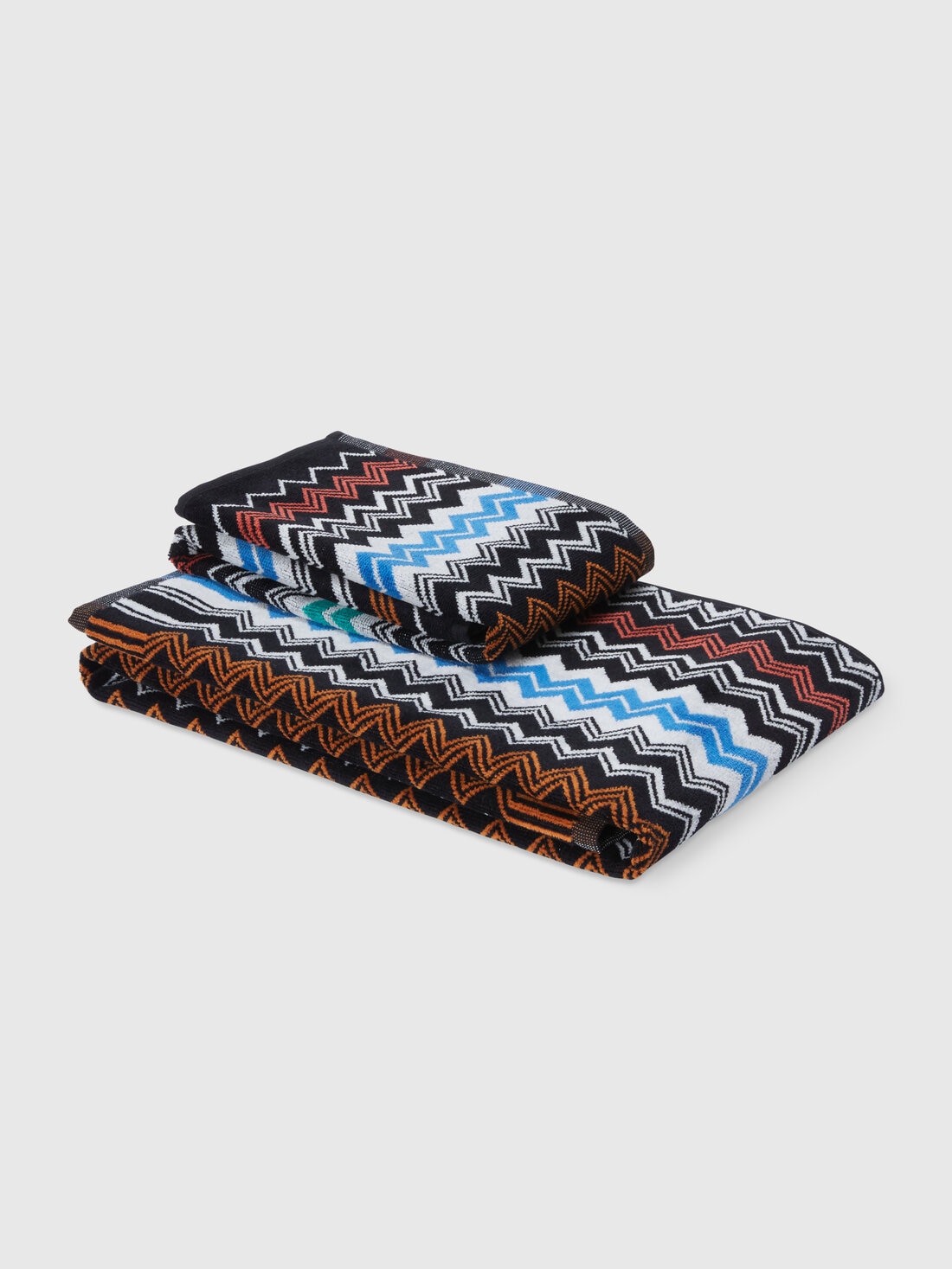 Neoclassic 2-piece bath towel set in cotton terry with zigzag pattern