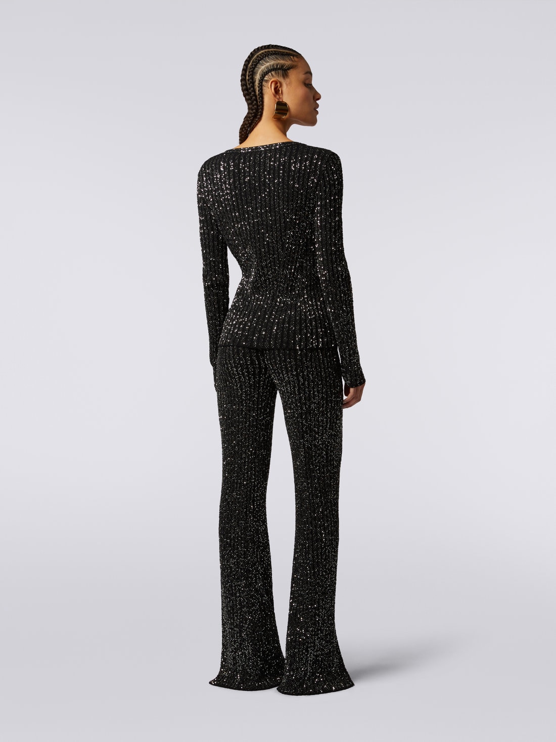 Viscose blend ribbed pullover with sequins
