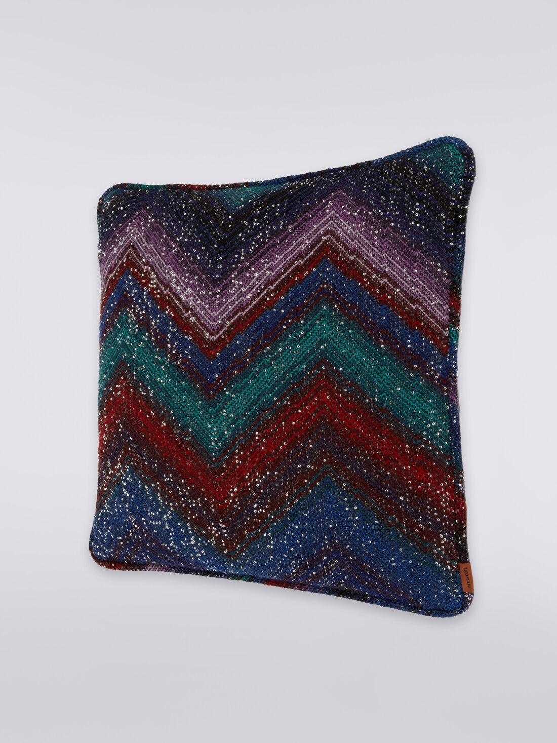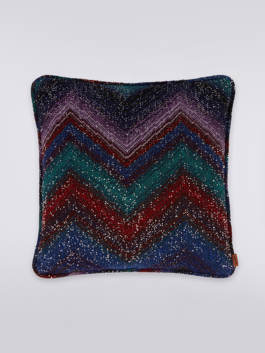 The shimmering glow of the sequins decorating the chevron pattern characterises the Stellare 40x4 cm cushion. Made of wool knit with a hand-made effect weave, the accessory is finished with tubular piping and personalised by the logo label.