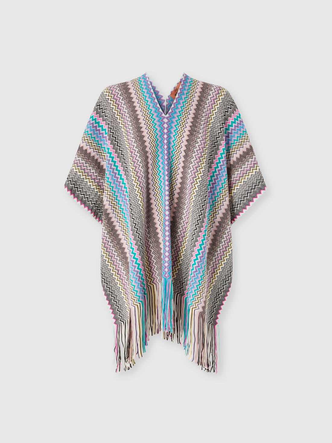 An accessory that adds a fresh twist to the most formal looks: here is the women’s poncho by Missoni. Made from a wool-blend knit, it features the iconic zigzag pattern and is finished with a fringed hem.