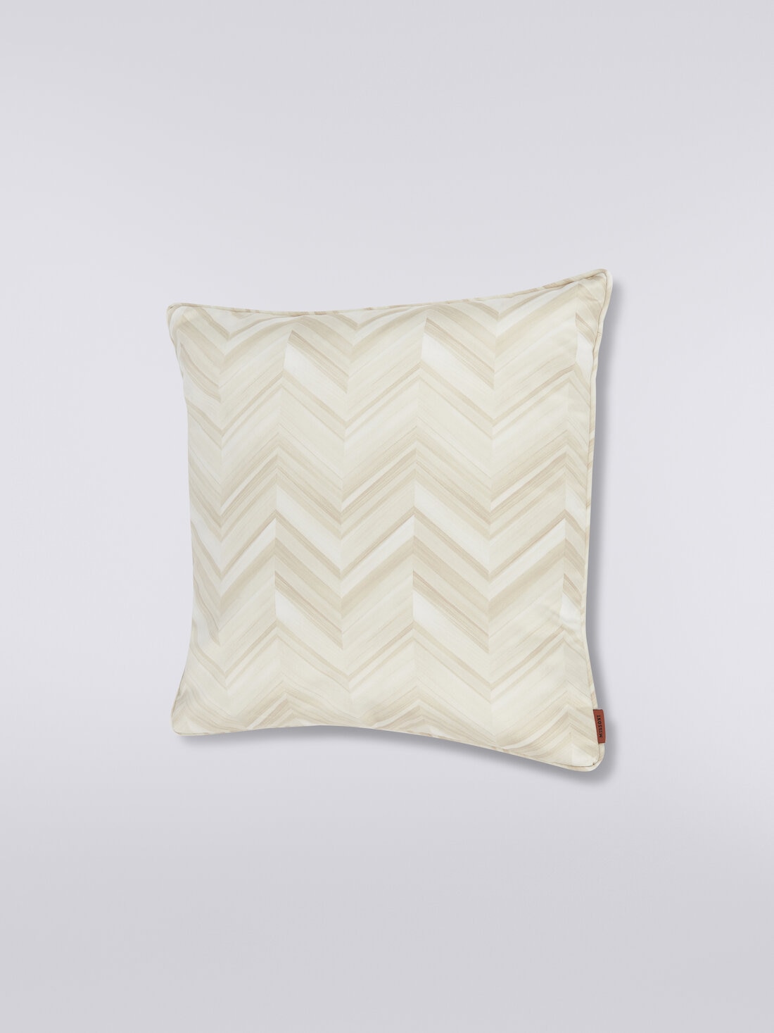 The charming pattern of the chevron motif, whose blurred zigzags alternate on the silky cotton sateen surface, characterises the 40x40 cm cushion. It is a perfect home accessory to warm up any room in pure Missoni style.