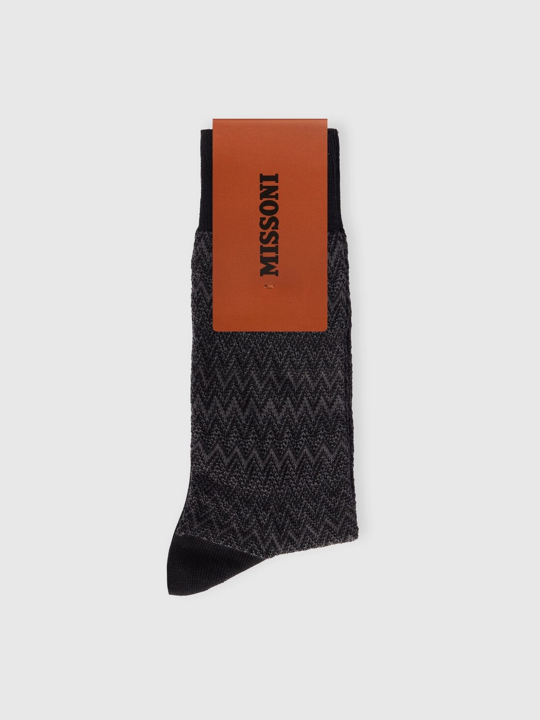 The iconic 3D effect zigzag pattern and solid color inserts define these mid length cotton blend men’s socks by Missoni, the perfect accessory for experimenting with everyday style.