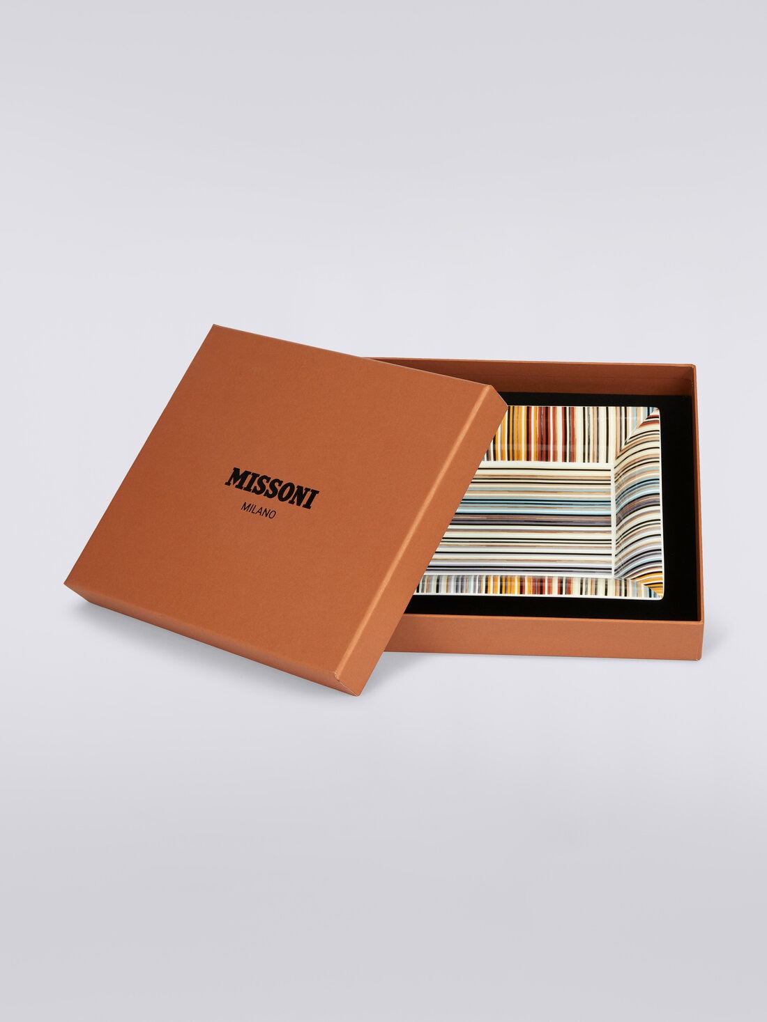 The Jenkins pattern adds a refined touch to this practical change tray. Available in a 20x16 cm rectangular version, this functional home accessory comes in an elegant gift box with the Missoni logo.