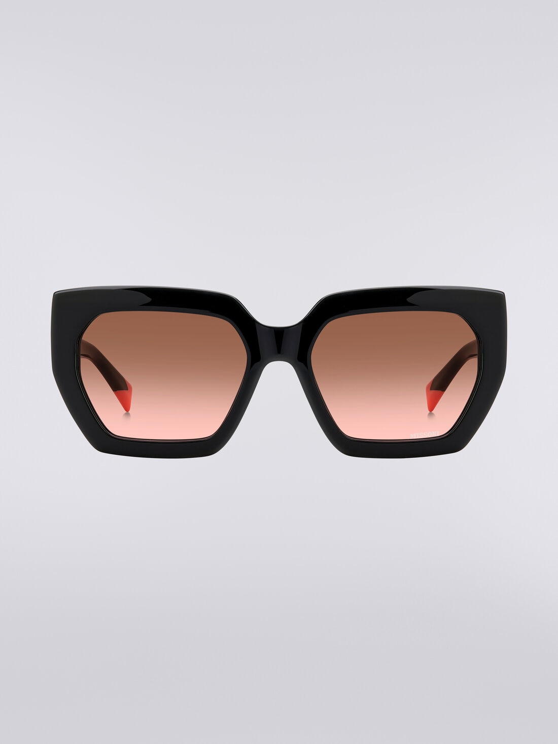Elegant and daring, these oversized acetate sunglasses from the Missoni eyewear collection embody a distinctive and sophisticated style. Their imposing silhouette is enhanced by a vibrant triangular acetate element with the laser-engraved Missoni logo on the oversized temples and the iconic tone-on-tone zigzag temple tips. Each surface of the frame has been specially crafted to make the model as light and comfortable as possible and is completed by the laser-engraved Missoni logo on the left lens.
