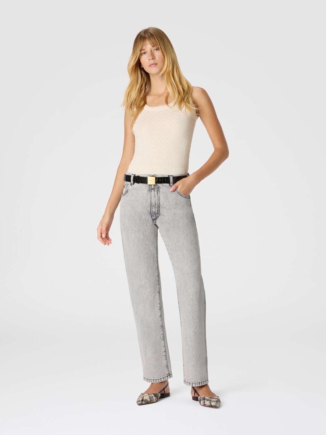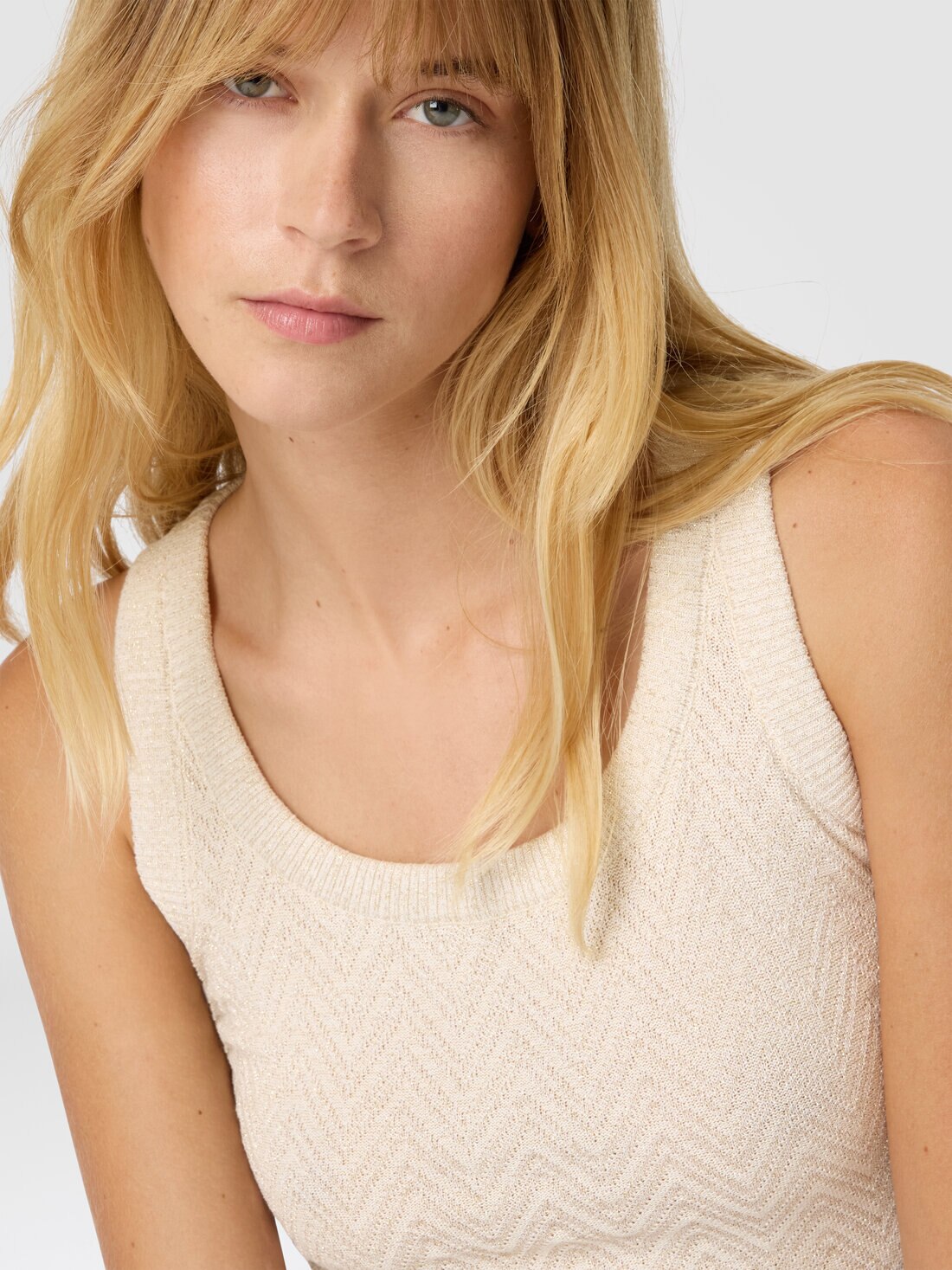 Made from a cotton and viscose blend with lamé filaments, this women's tank top features a tone-on-tone zigzag jacquard pattern, a signature detail of the Missoni style.
