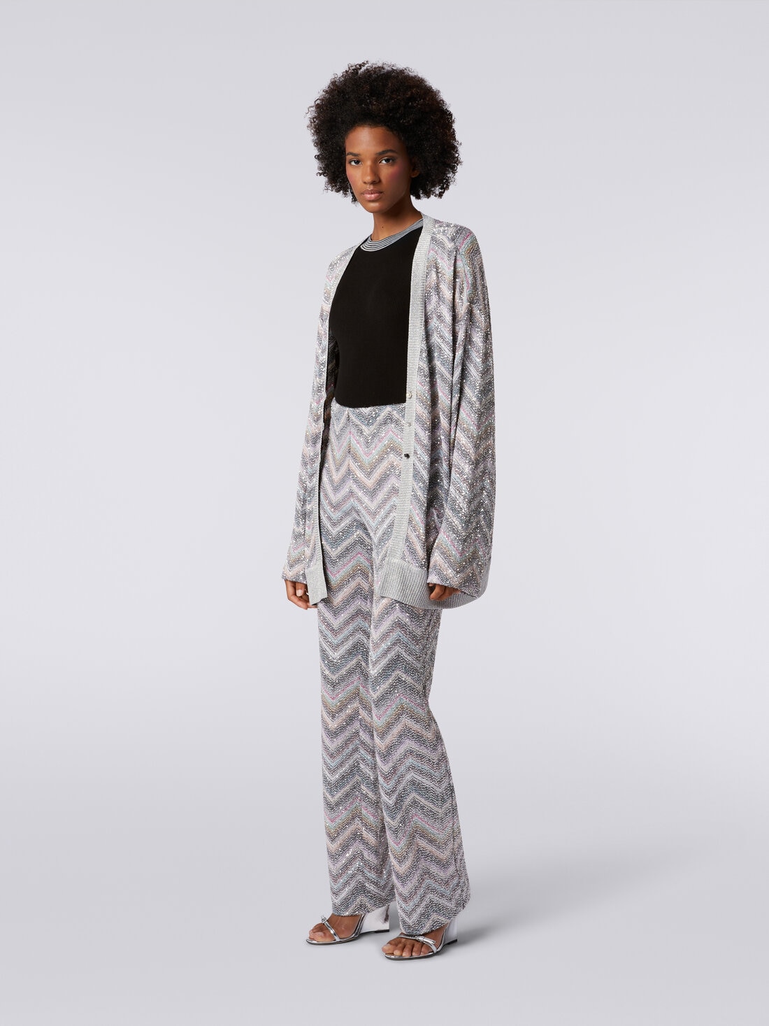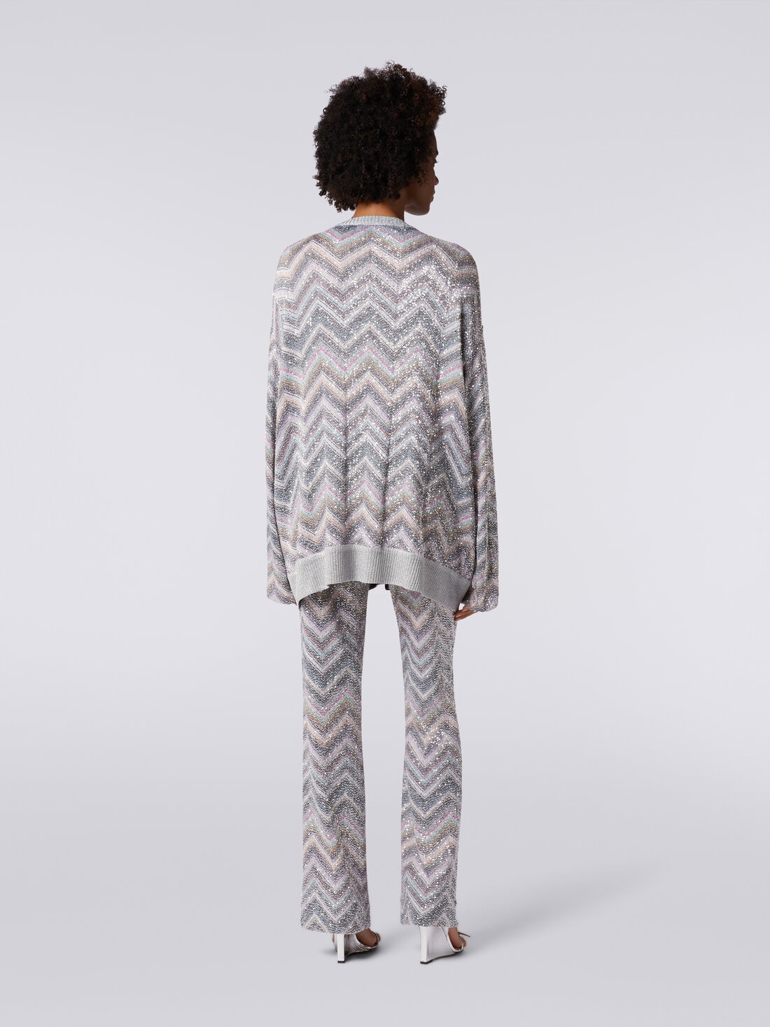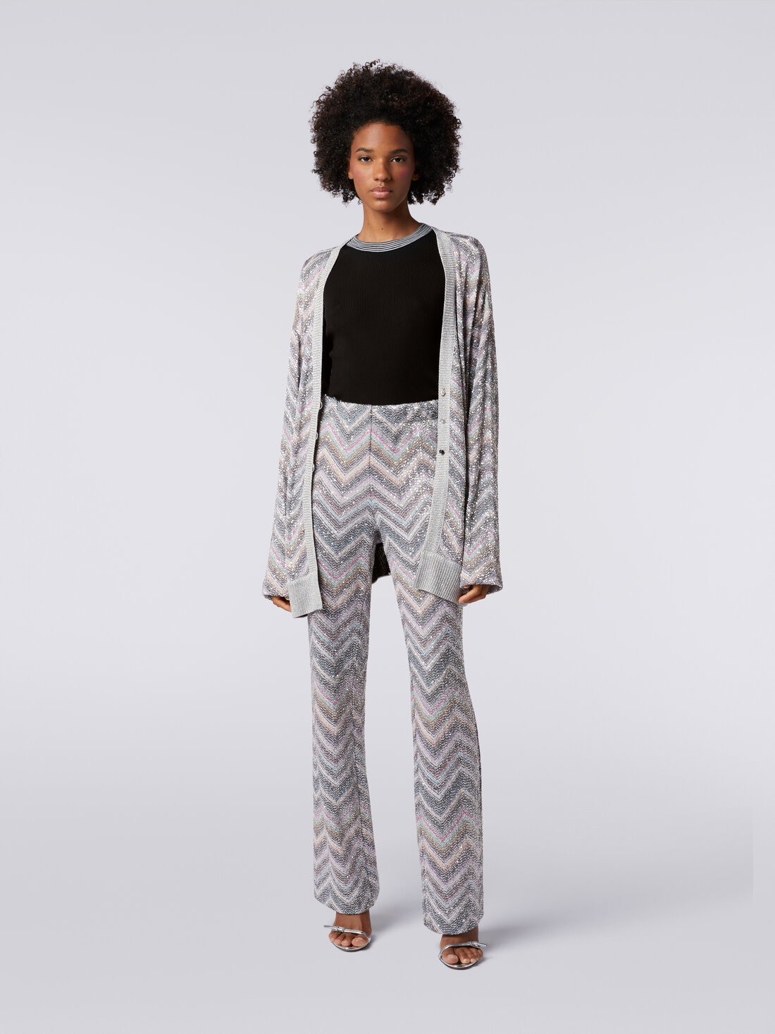 Flared trousers in zigzag knit with sequins