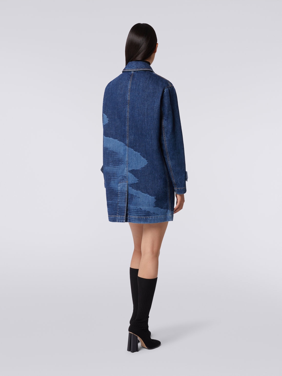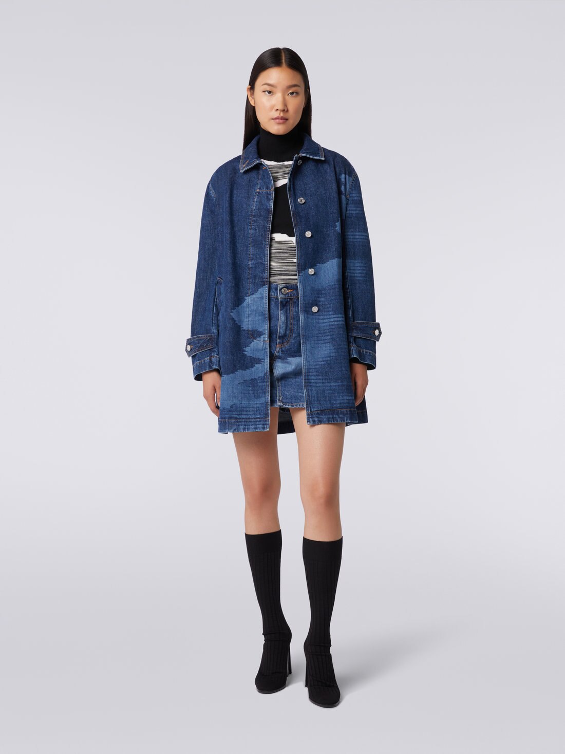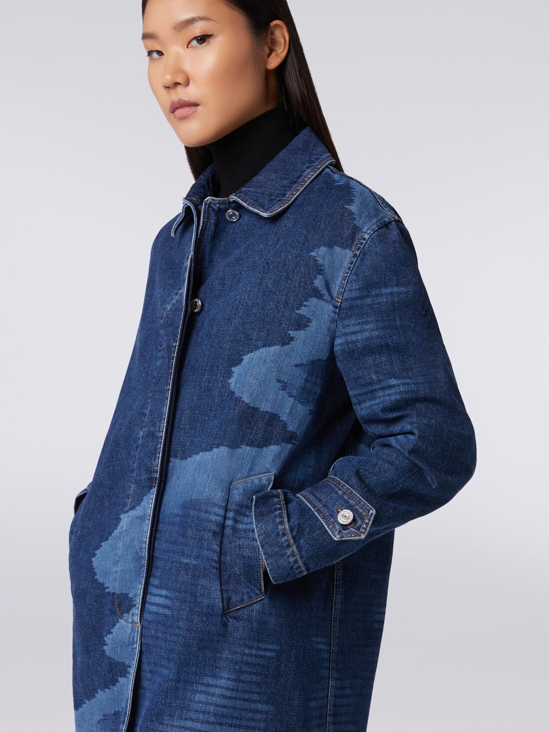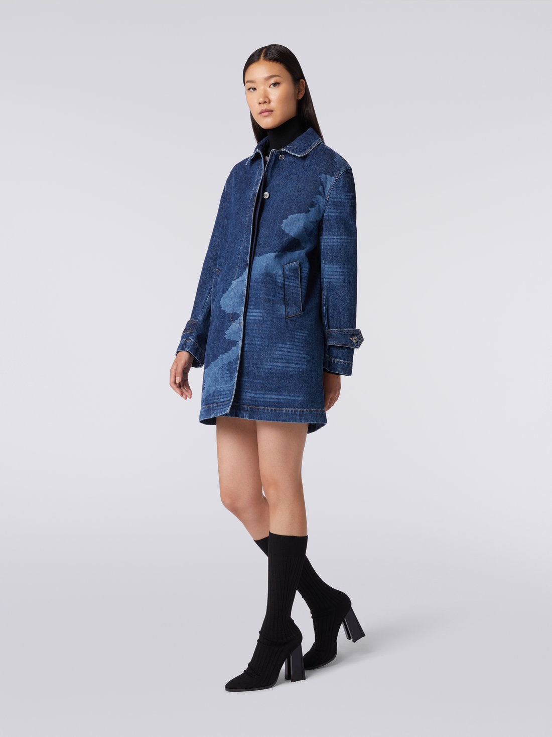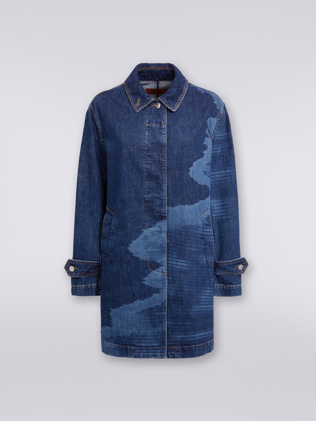 Giving a surprising jolt to expectations is Missoni’s laser-cut denim trench coat. The innovative design features the insertion of the iconic slub pattern, here in a large version.
