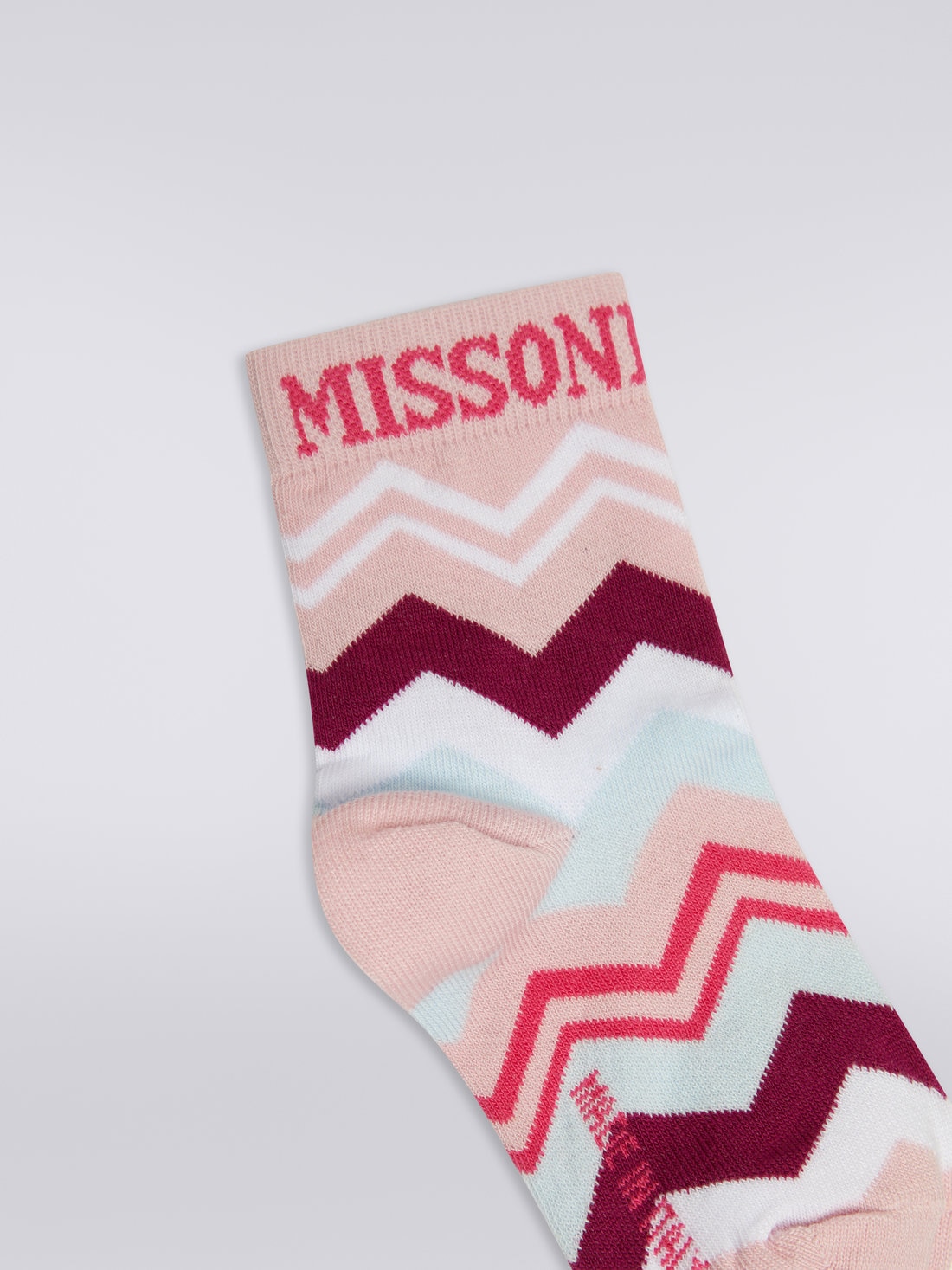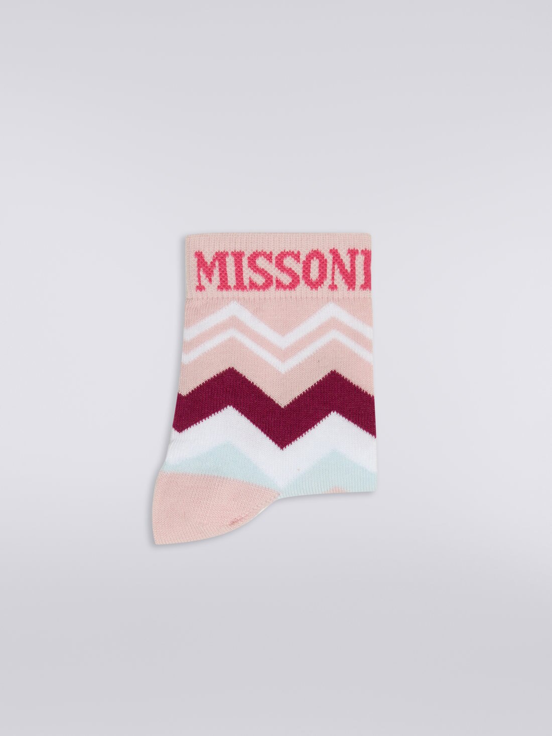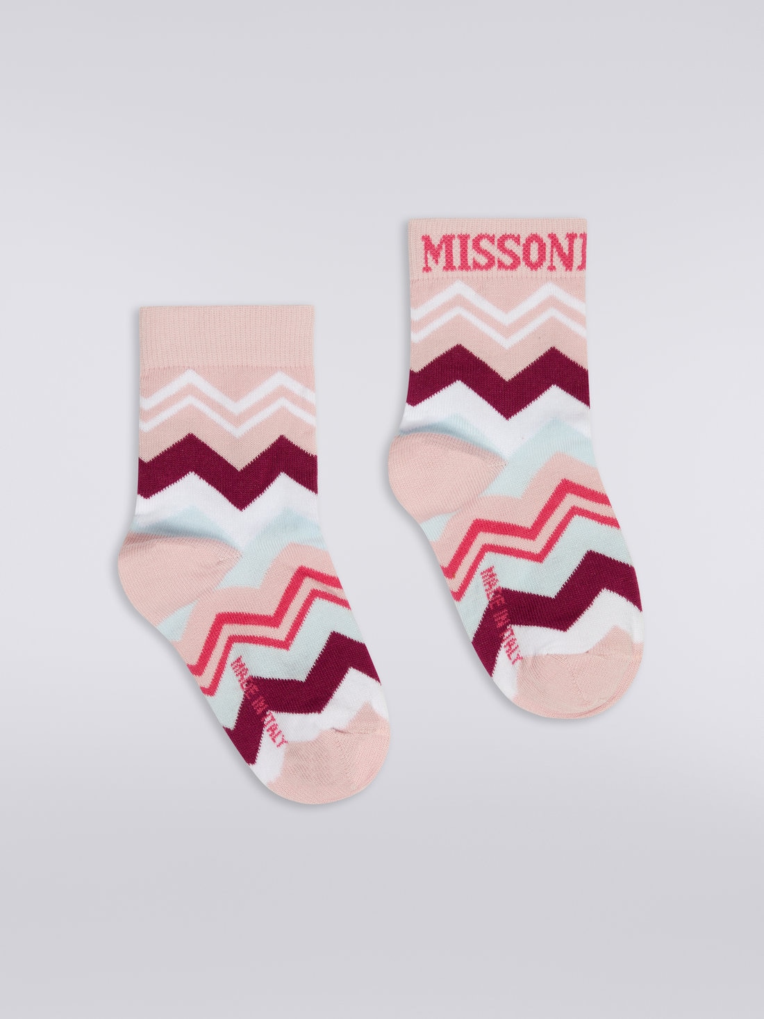Missoni girls’ socks combine comfort and distinctive style. Made of a soft stretch cotton blend, they feature the brand’s iconic zigzag pattern. The Missoni logo lettering on the trim adds a touch of recognition and glamour to the socks, making them a perfect accessory to complete every outfit.