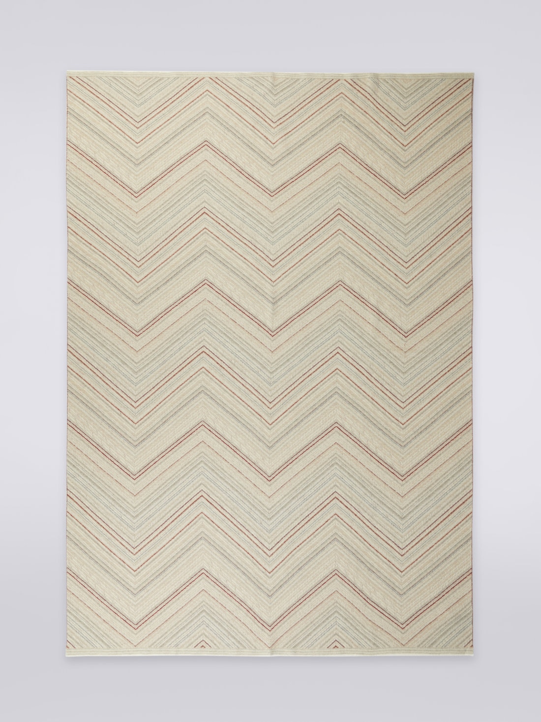 Refreshing home environments with its refined touch is what MissoniHome does best, starting with its bed linen, which includes Catullo, the 130x190 cm wool and cachemire plaid blanket with fringed edge. Embellished using the jacquard technique with the chevron pattern, the blanket will bring a pleasant twist to any room.