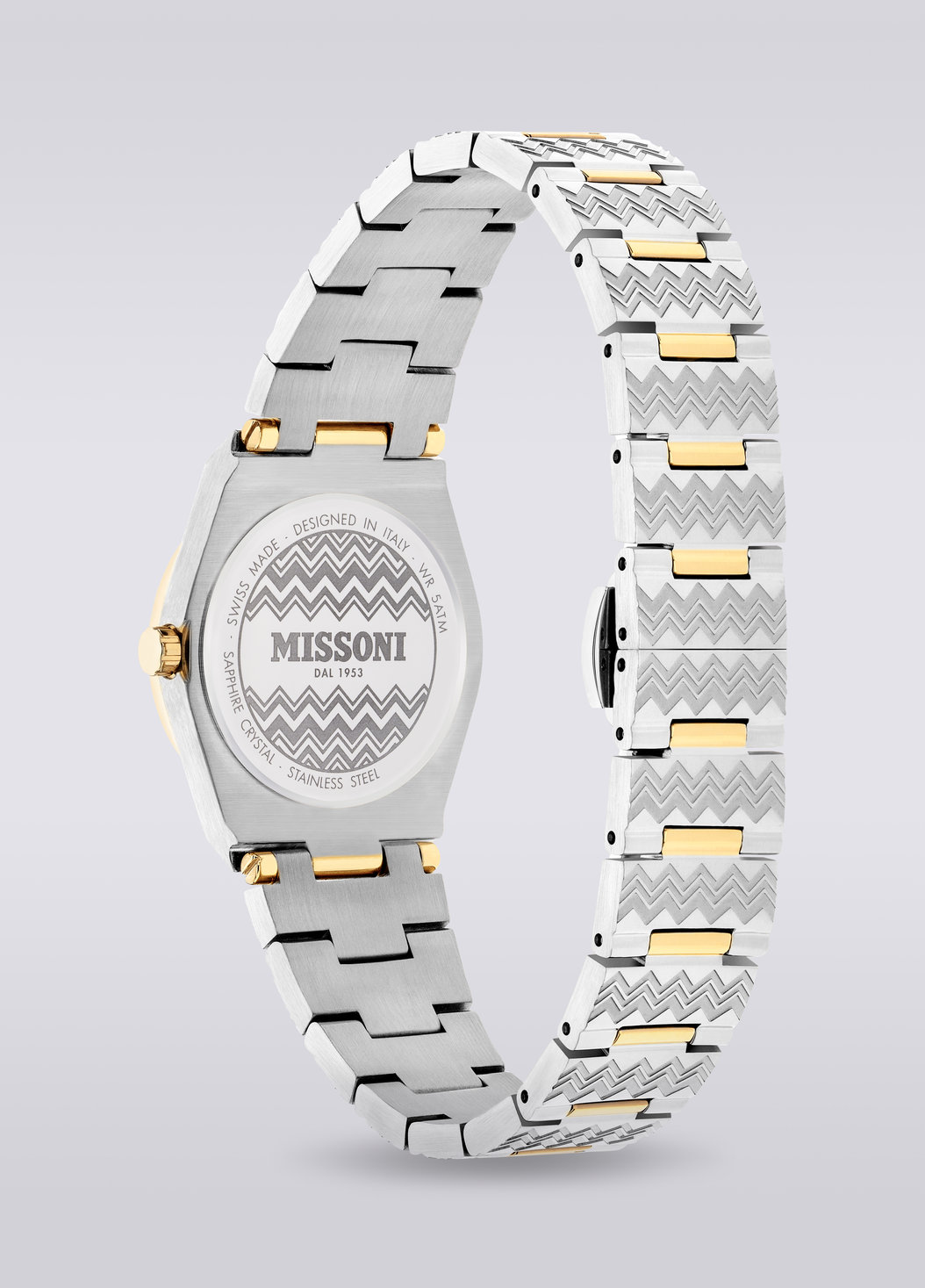 The iconic zigzag motif of the Maison is echoed with strong branding all over the watch with multiple executions on the bracelet and dial able to embellish this timepiece with a unique and refined style.