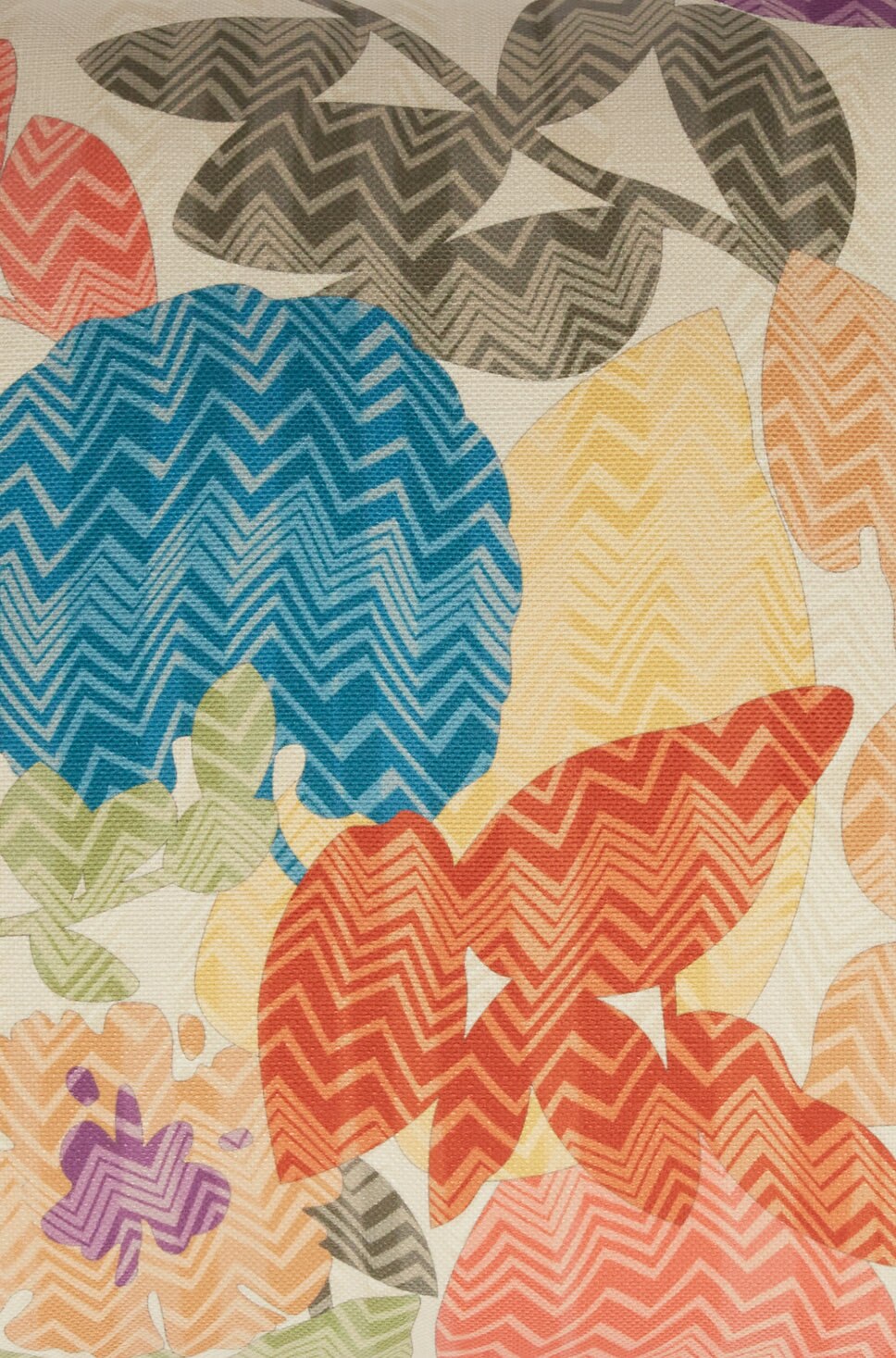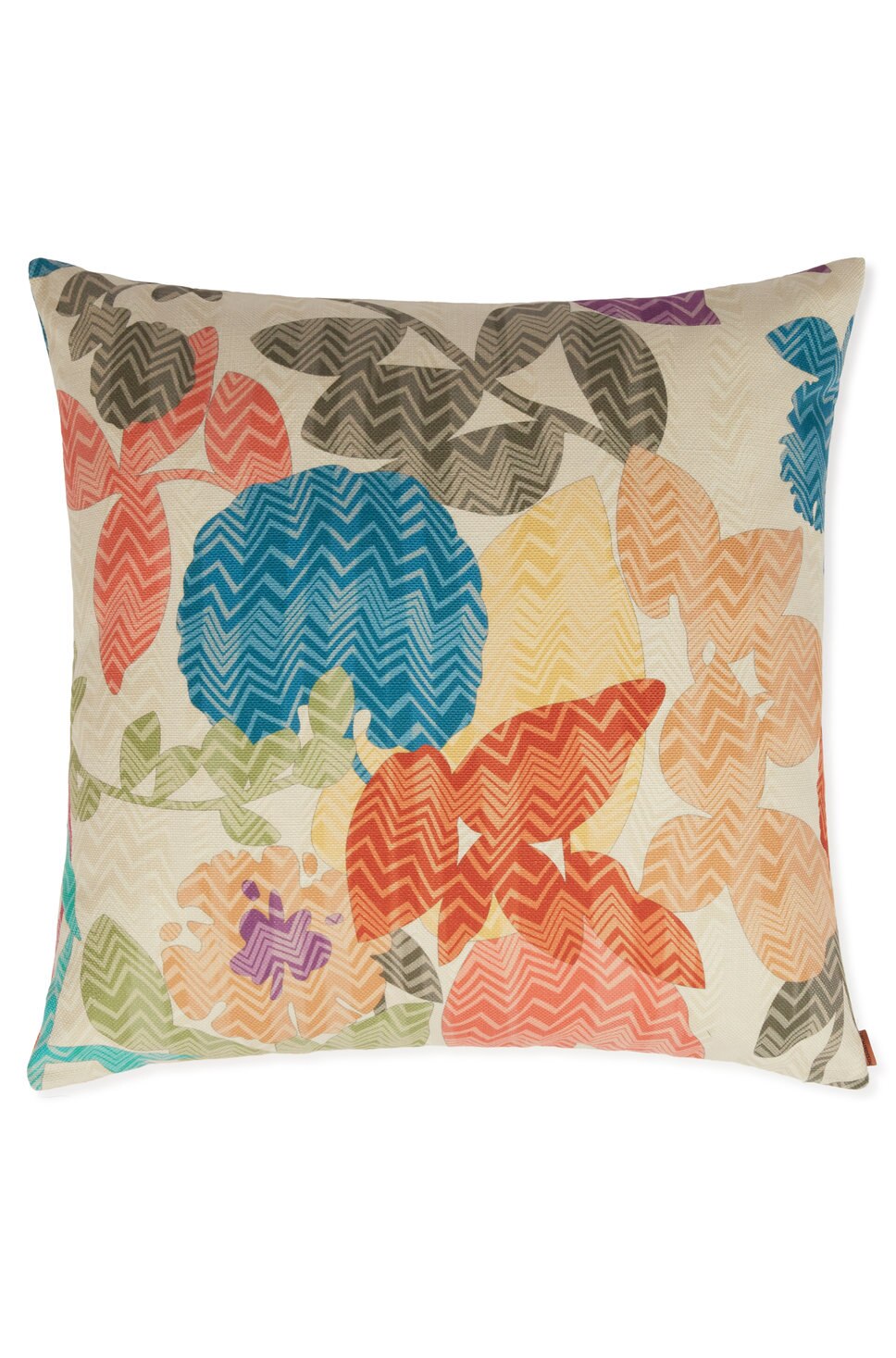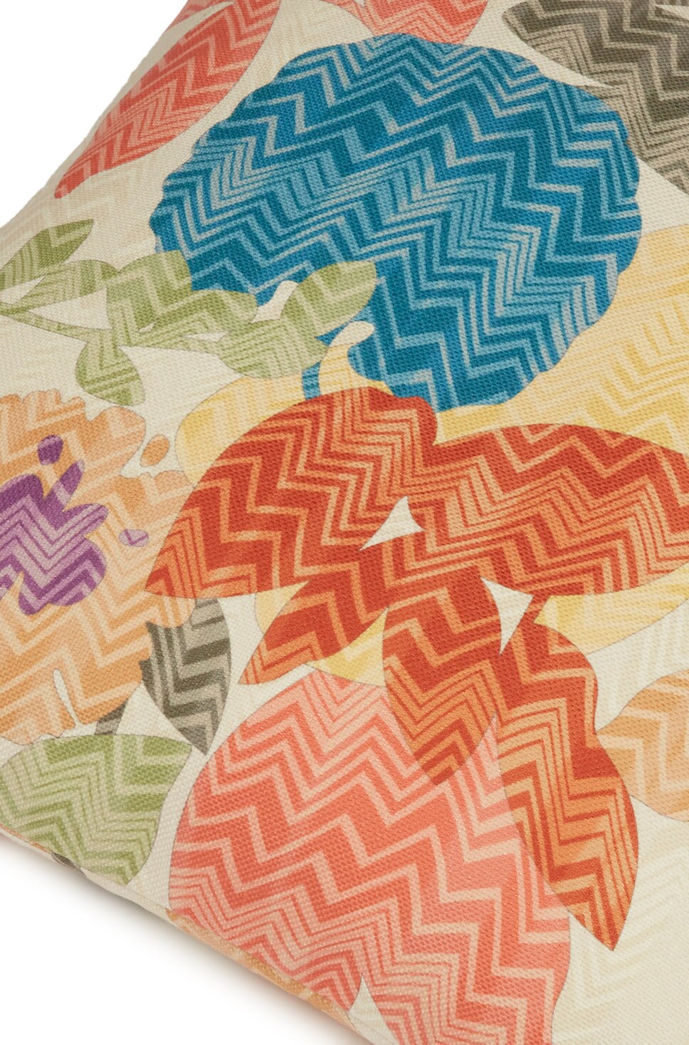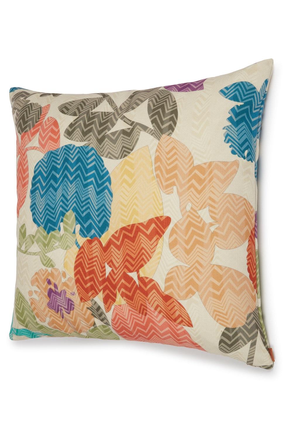 A colourful rug with maxi-foliage, formed with the arrival of a gust of creativity, seems to ease down little by little on the surface of Bogotà, the cushion in floral print canvas outdoor fabric. MissoniHome is able to combine the foliage theme in a single print with the iconic symbol of its own style, the chevron, giving life to a harmonious, and at the same time dynamic, motif.